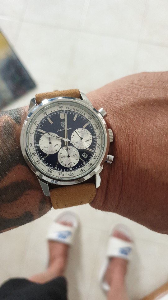 Great looking watch. Unfortunately the Tachymeter is not usable. The big second hand ticks like a regular watch, the small dial second hand is used to track time, seems backwards.