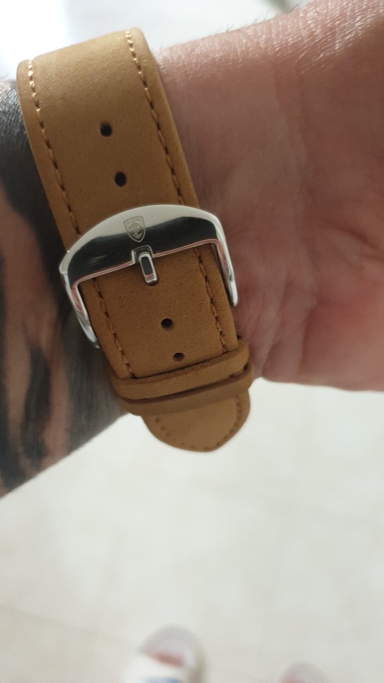 Is as indicated in the photographs. Good presence. Does not weigh, and the strap is leather. After two days it is a second late. OK.