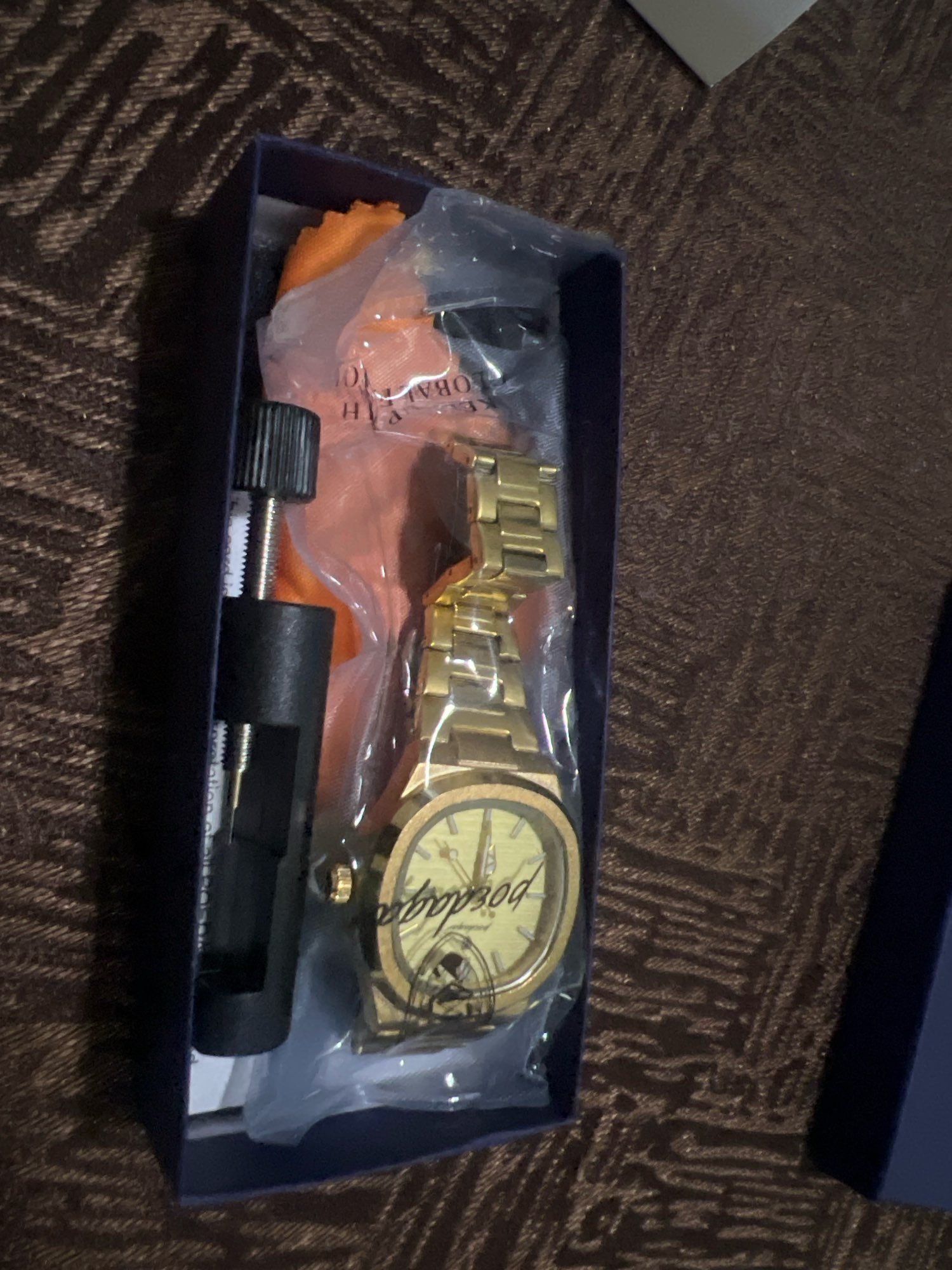 Muy bonito, tal como se ve en el anuncio. El envío fue rápido y muy bien embalado. Estaba incluido un regalo, un instrumento para quitar los eslabones que sobren.