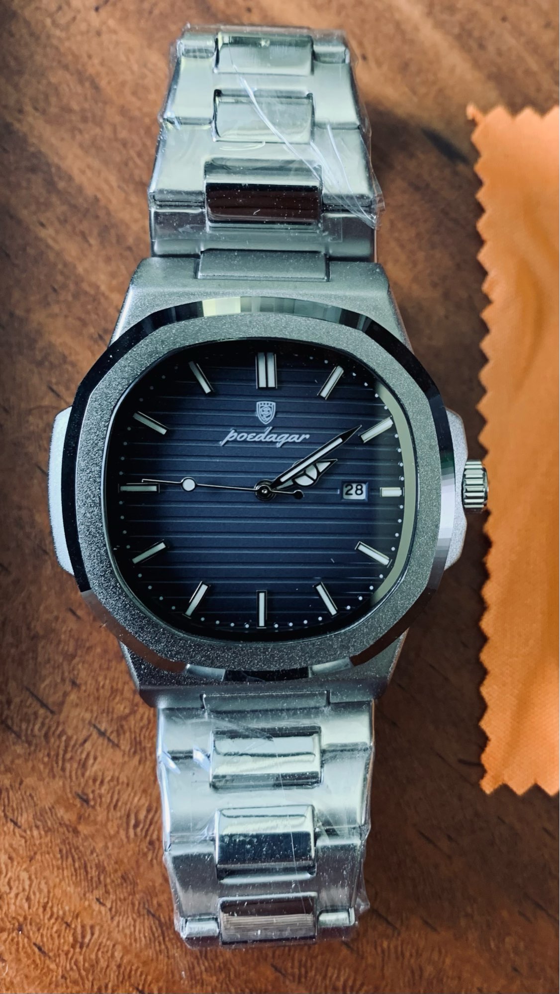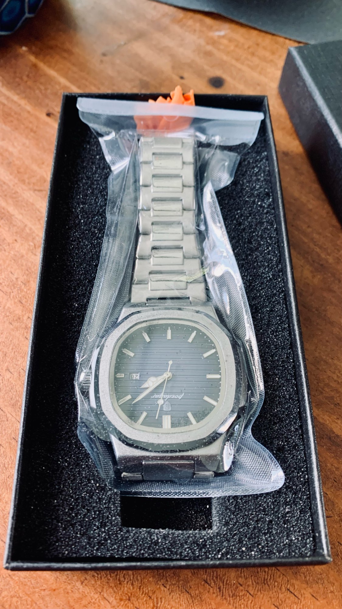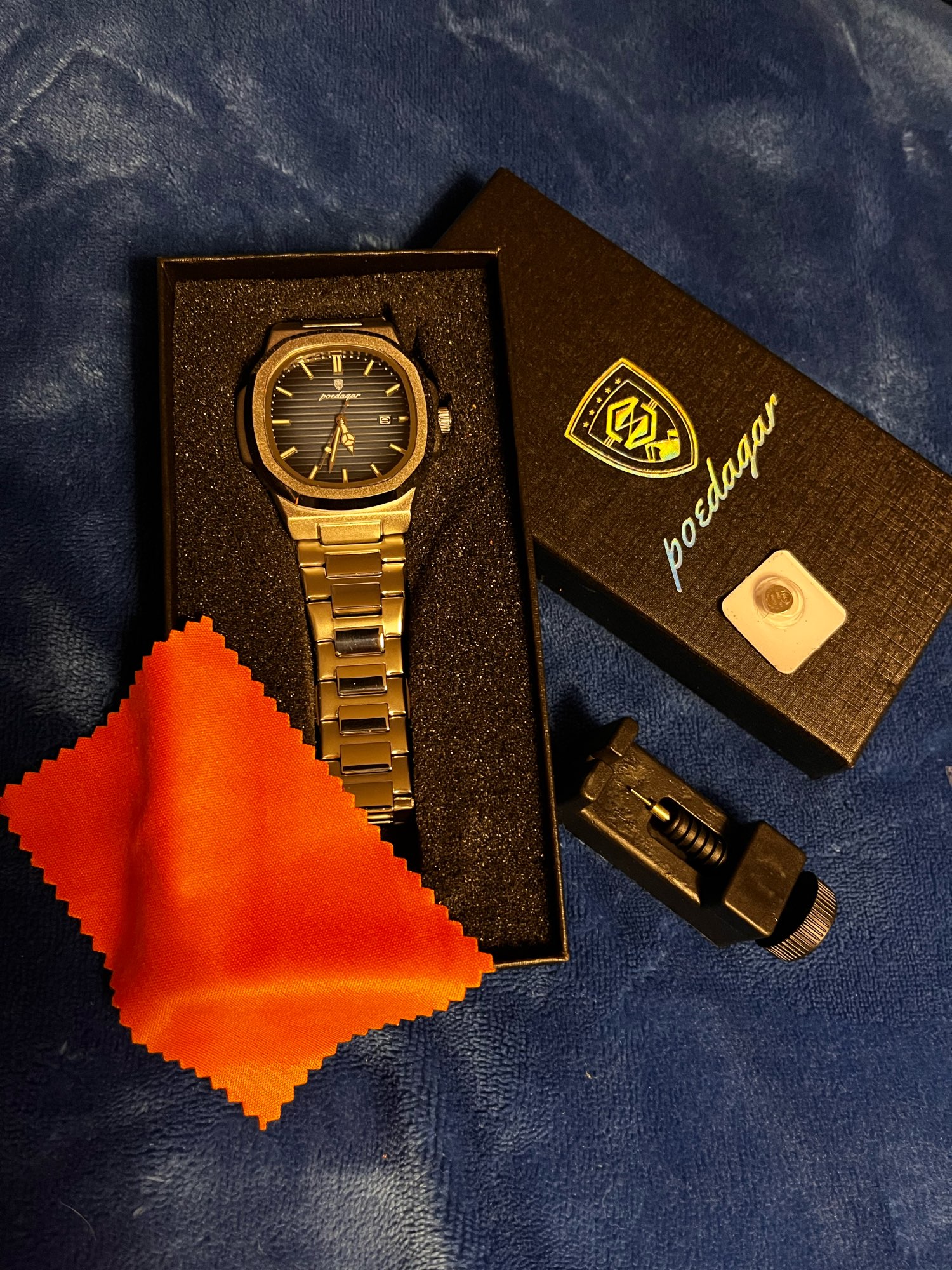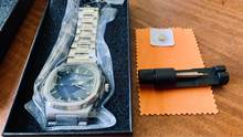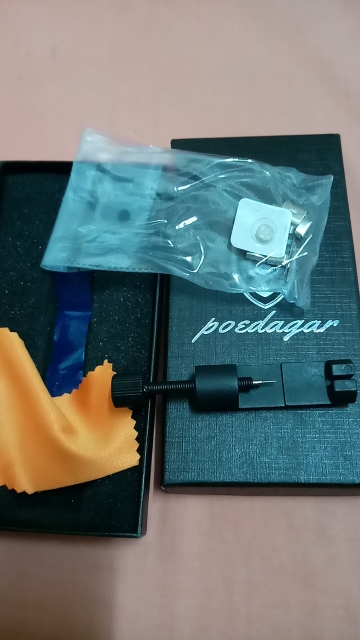 super quality and more than I expected. it's more luxury than it's price. thank you very much. got extra battery and adjuster. thank you very much.. buy without hesitation.. super quality watch. I will buy more.