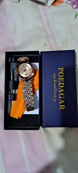 A poedagar always innovating its products with great quality and elegance, high level watches in detail, first-rate product, sturdy and functional, I can also count on the water resistance functionality besides the bracelet having great quality and size adjustment, it comes with original box, bracelet regulation tool, Microfiber cloth for cleaning and warranty card, I recommend buying this product.