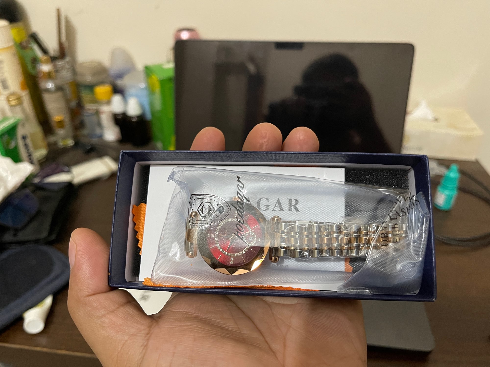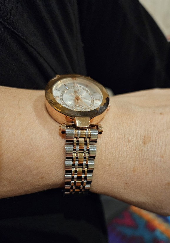 muy hermoso el reloj a mi esposa le gustó mucho vamos a probar la calidad que espero que sea muy buena.producto totalmente recomendado