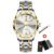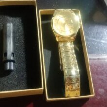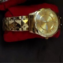 Es un reloj muy bonito, las fotos no le hacen justicia se ve mejor, está funcionando muy bie, trae su cajita y el dispositivo para ajustar correa