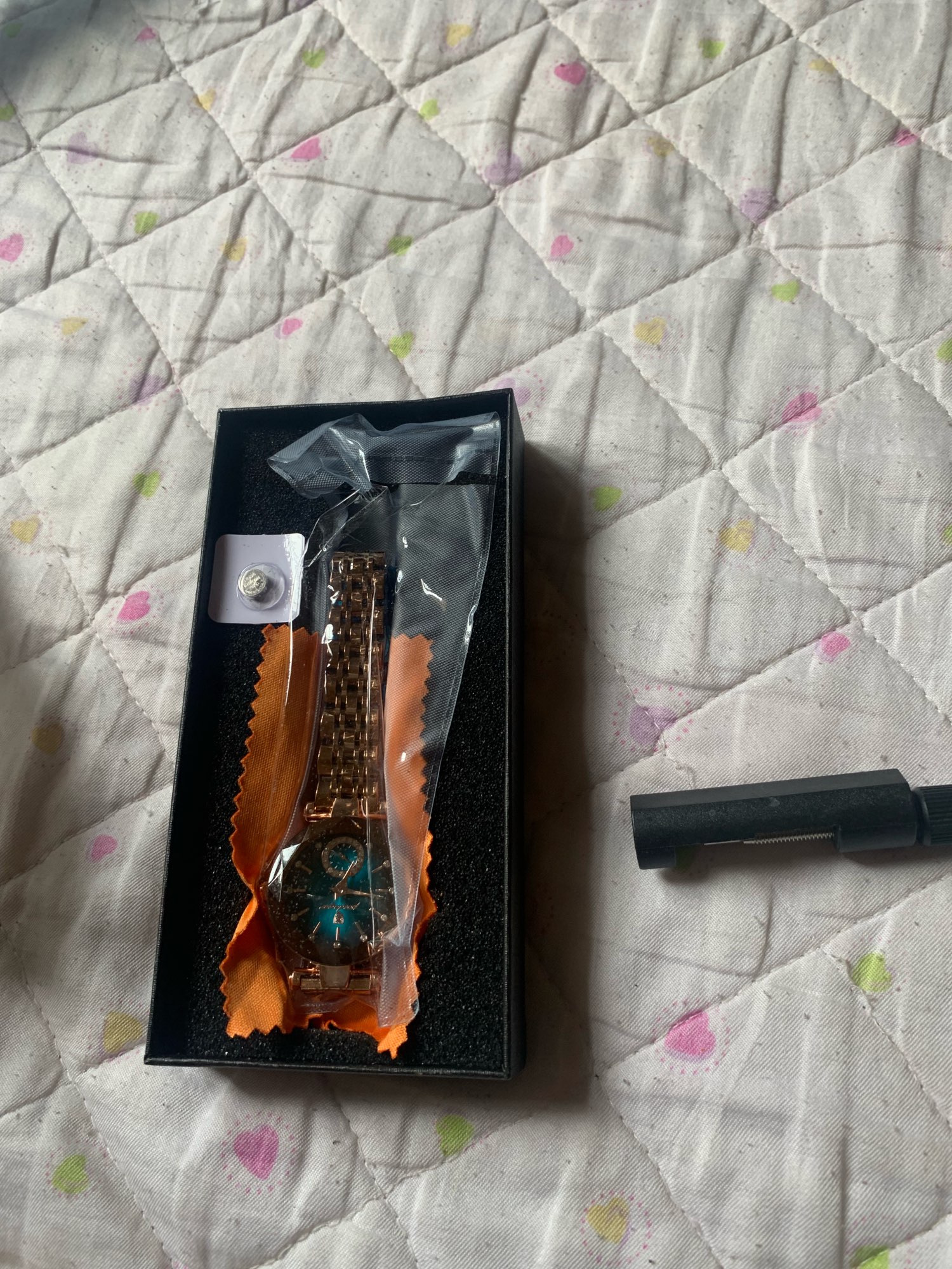 It is a beautiful watch, it really is identical to the image, it came super well packed and with a very nice case of the first quality, in addition to a cleaning cloth like the lenses, A disassembler tool with its sachet and a spare pile, it's amazing and it's beautiful. I recommend buying it one hundred percent.