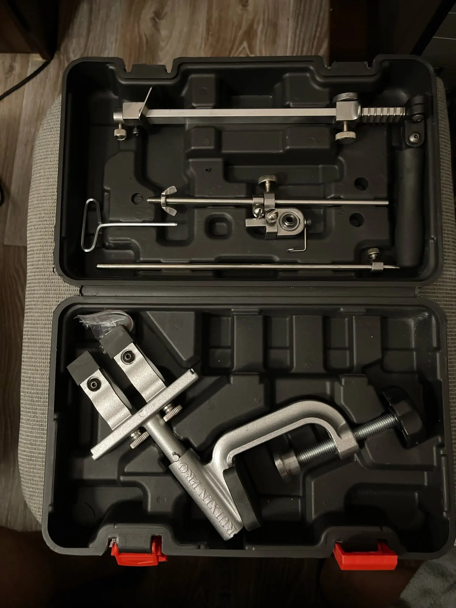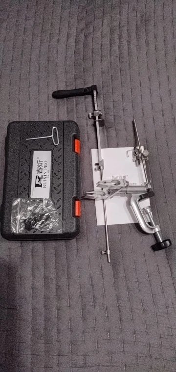 Надивившись оглядів вирішив придбати цей пристрій, виявилась дуже крута штука, легка збірка, легка установка, заточив вже пʼять ножів для практики, результат класний, я не професіонал до цього точив ножі на камені. Загалом результатом задоволений, замовив ще каменів різної грітності👍