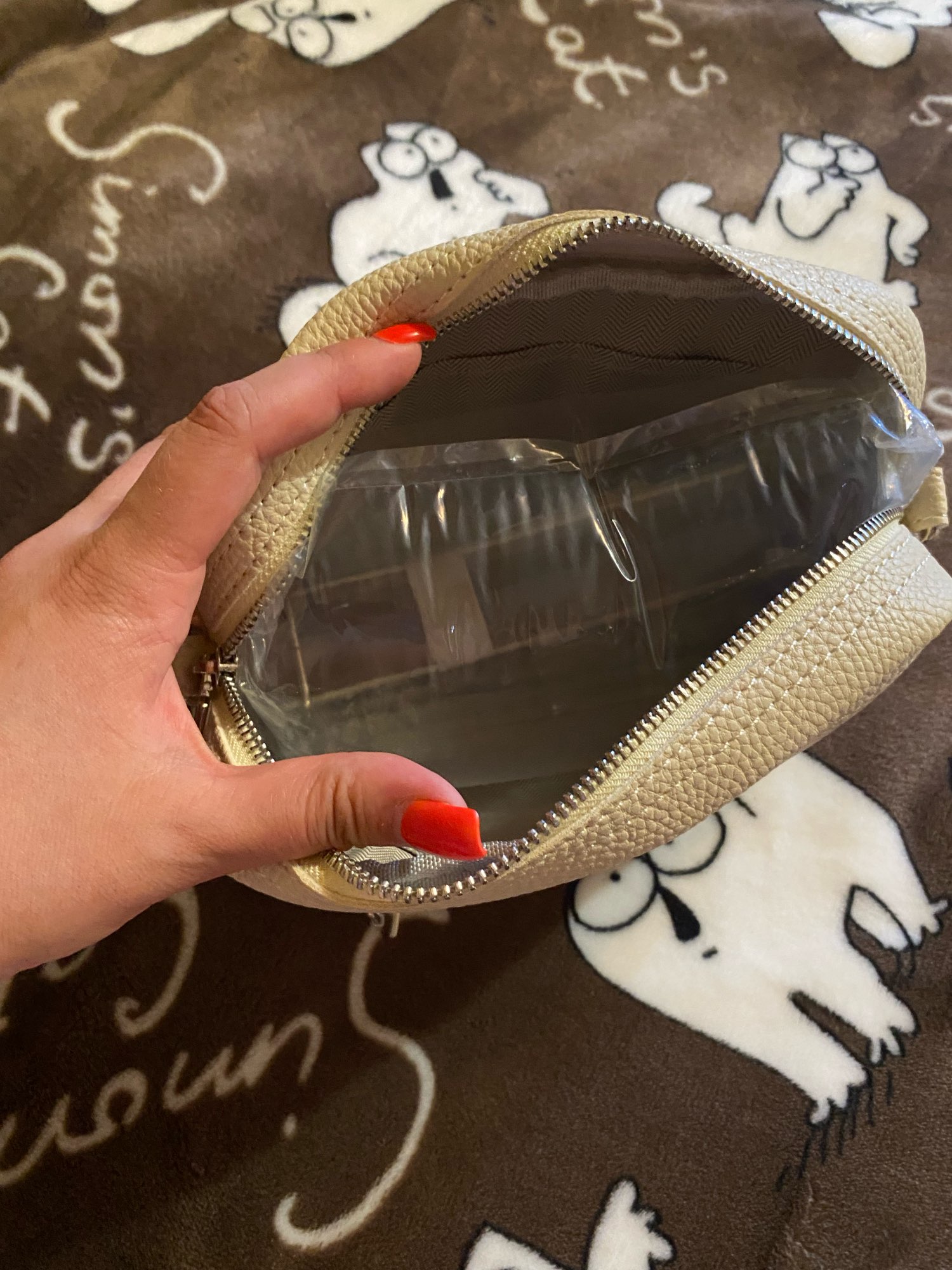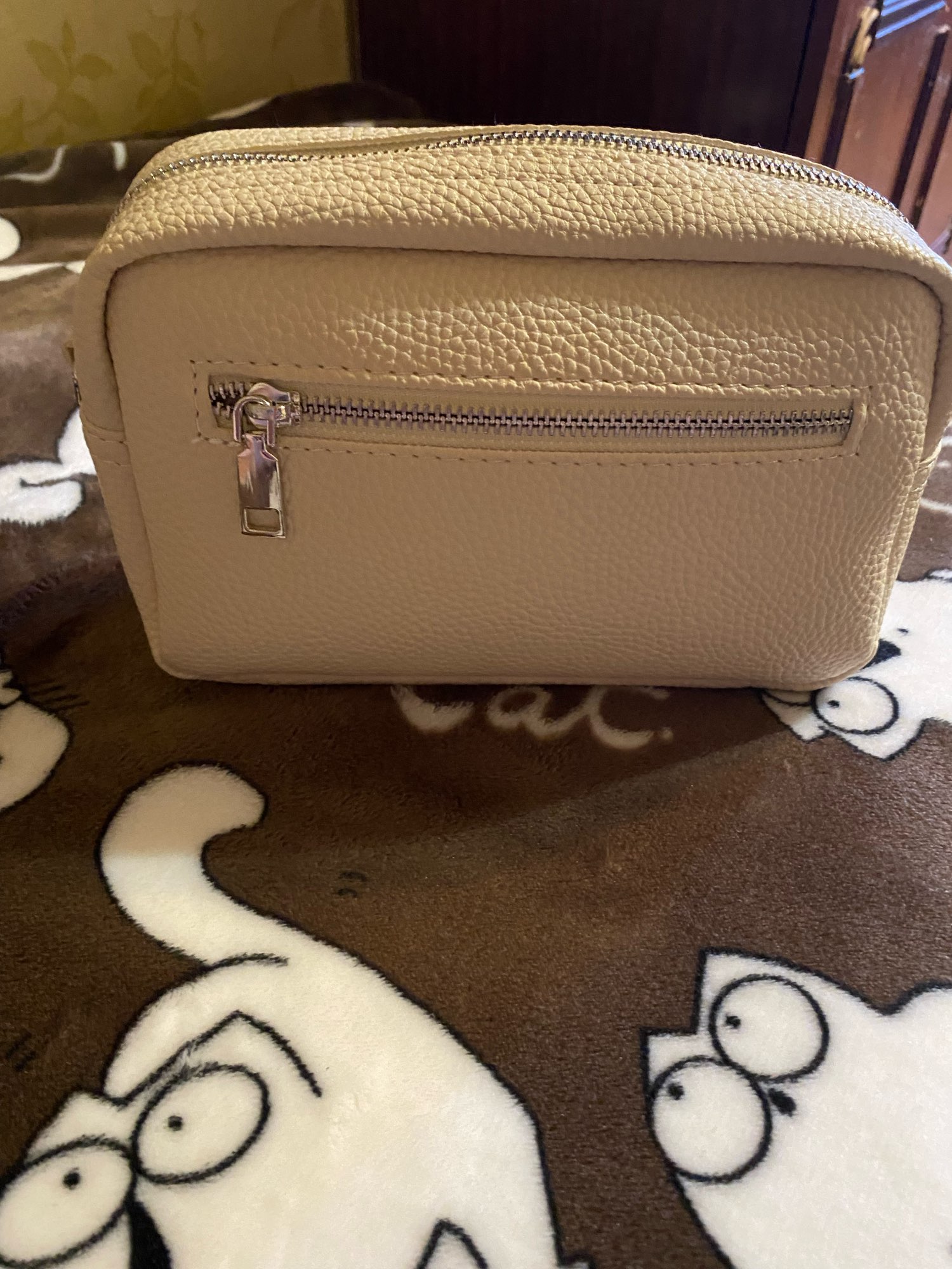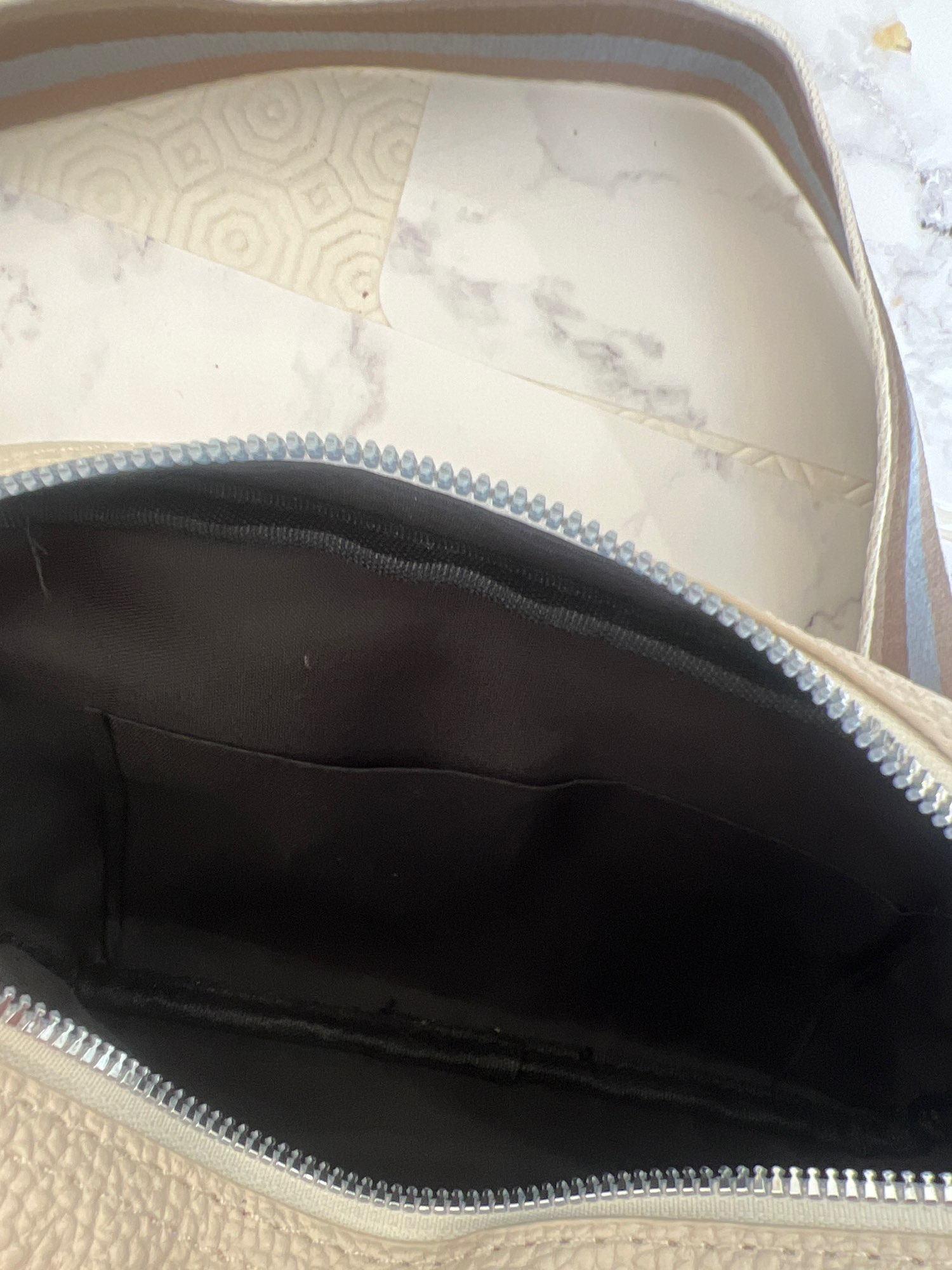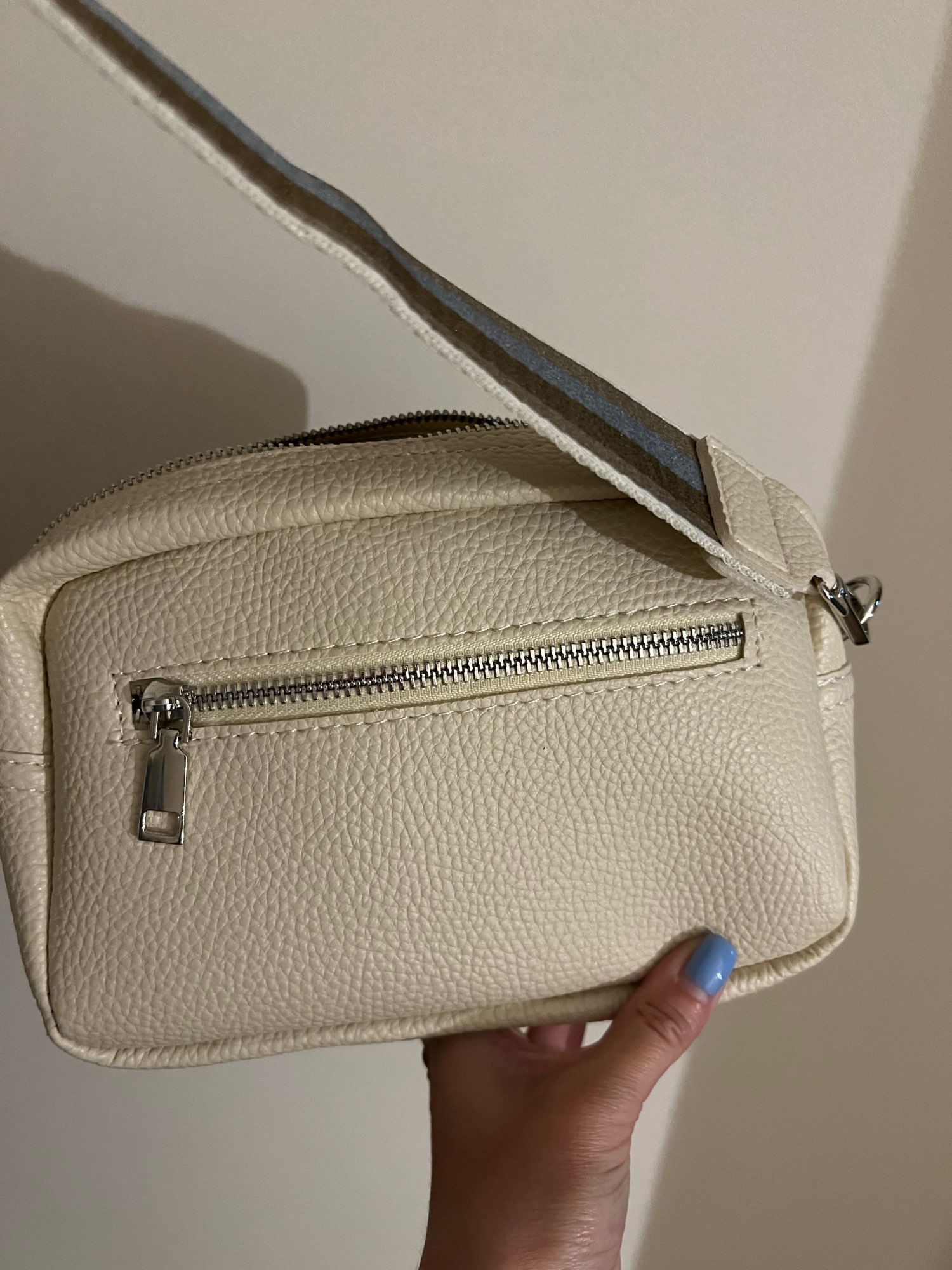 I'm satisfied with the bag. Small but large beautiful shoulder strap