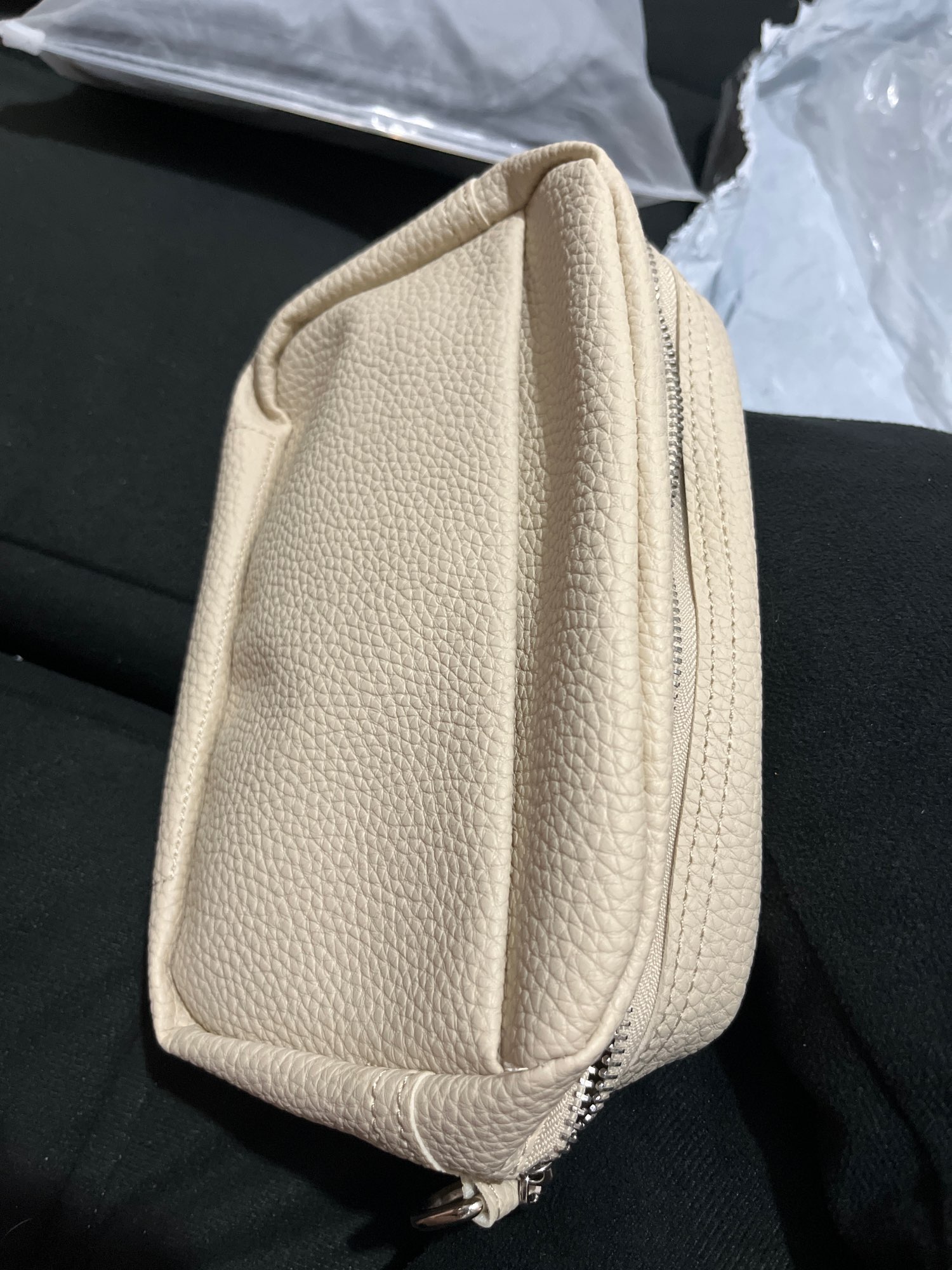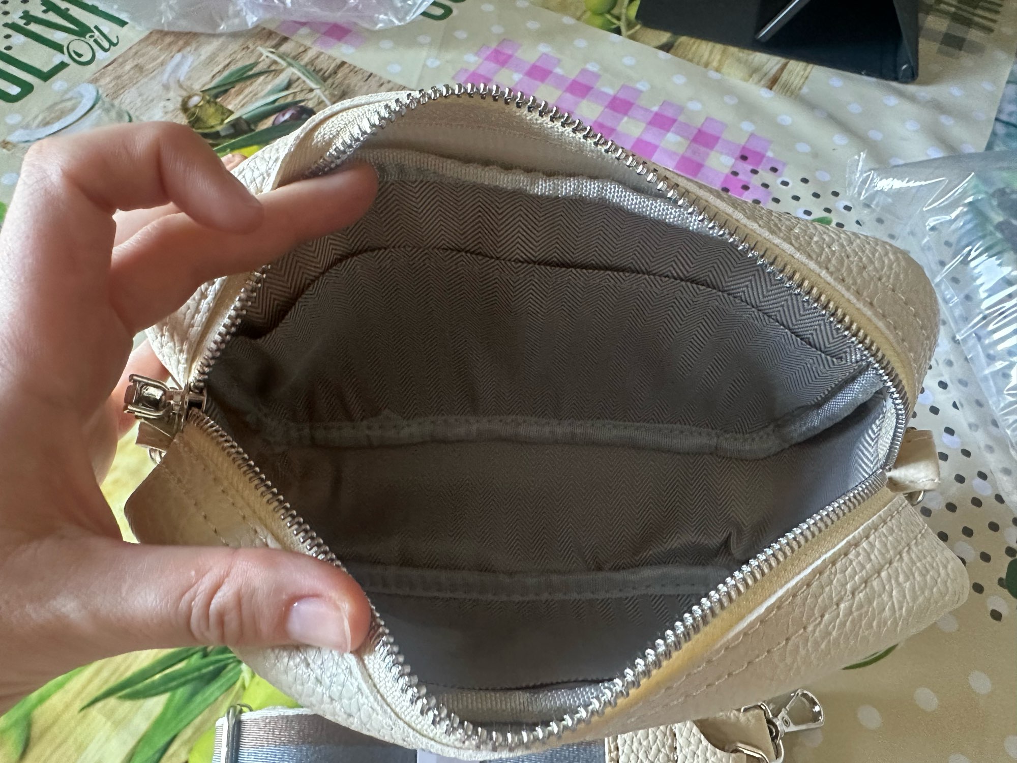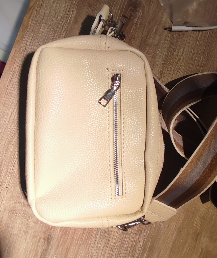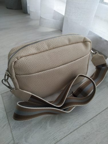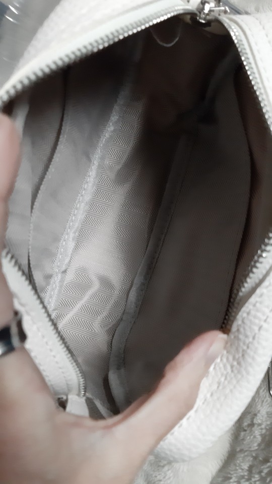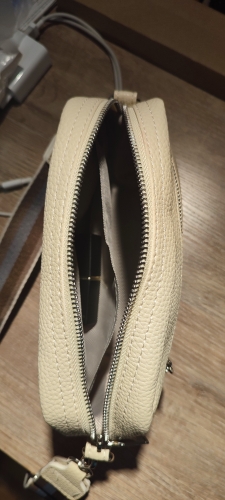 I'm delighted with the bag. I love that it came armed, stuffed with an inflated air bag so it doesn't lose its shape. Is prettier than I expected. The zippers work perfectly. I do not know if it was a mistake or if the photograph of the publication does not show the color correctly, but the color of the ribbon is not in brown tones as I expected, but also has a lilac. I still like it a lot, but keep it in mind if you want to buy this bag.