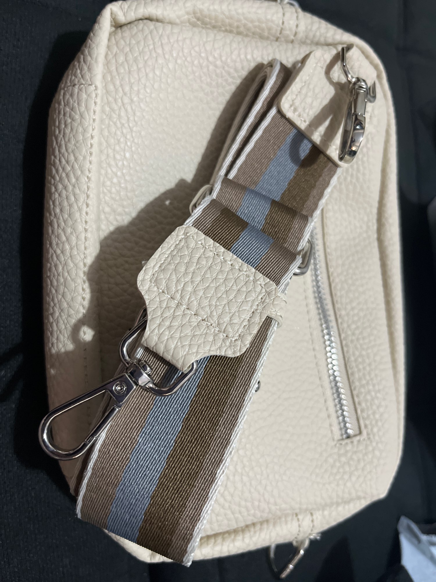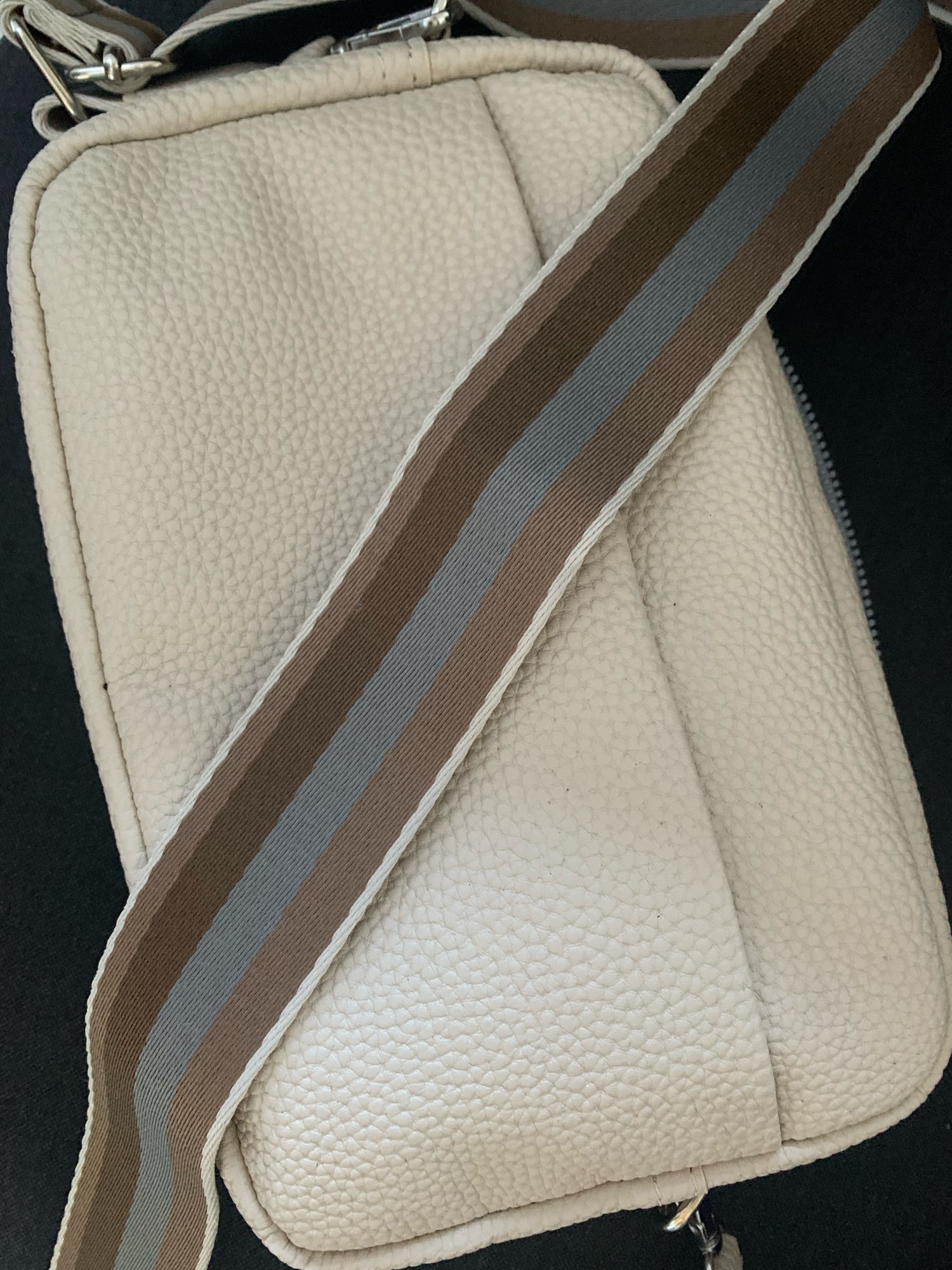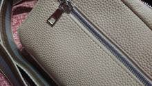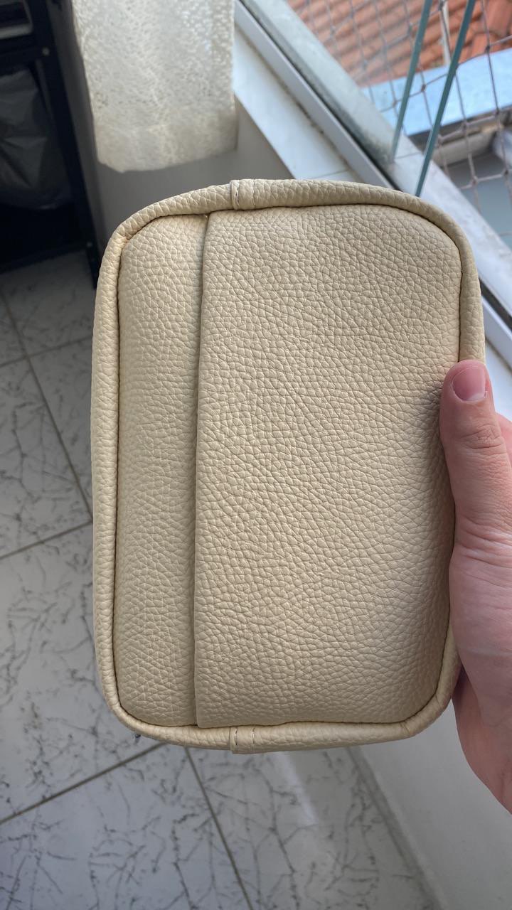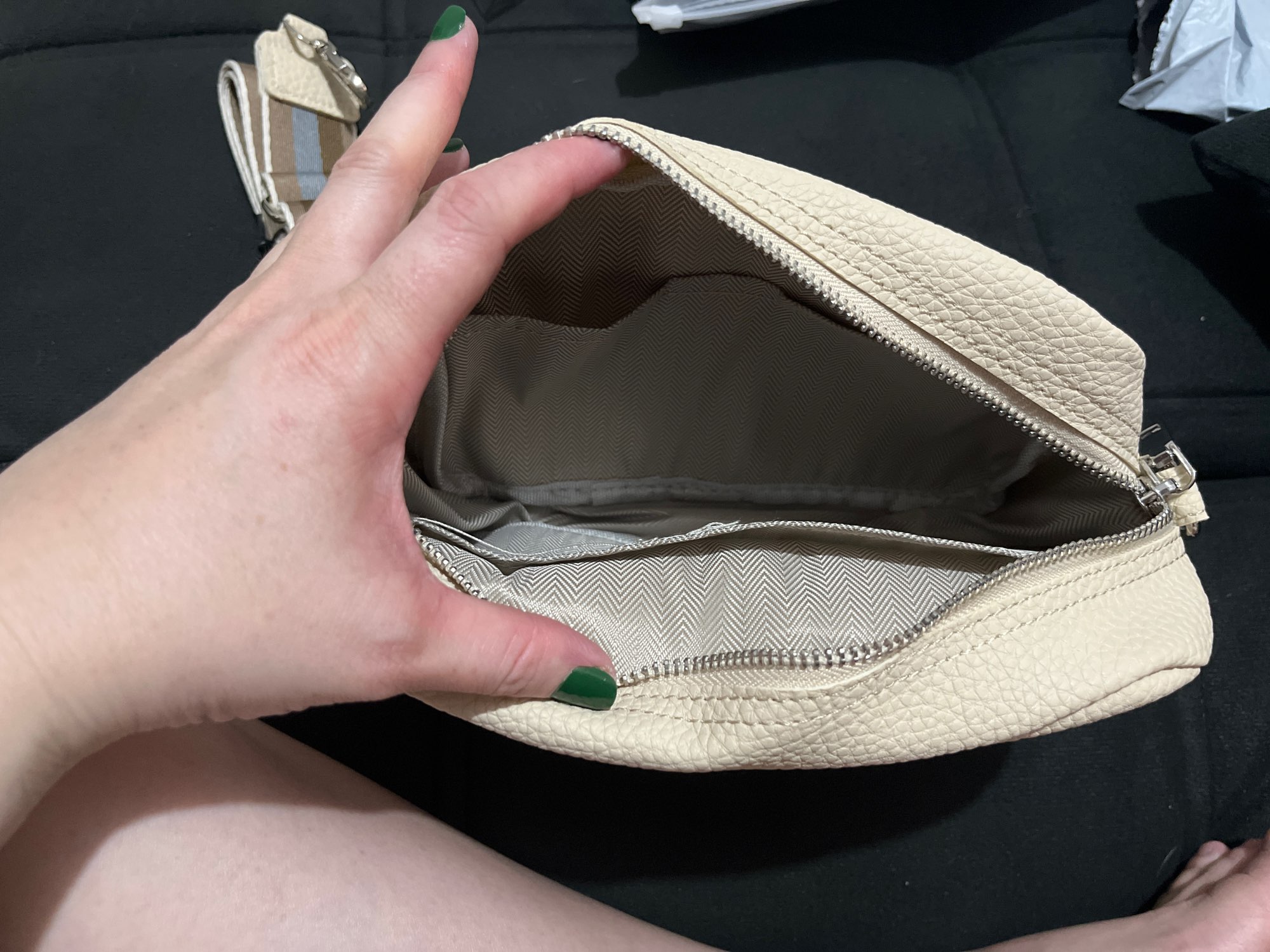 I'm delighted with the bag. I love that it came armed, stuffed with an inflated air bag so it doesn't lose its shape. Is prettier than I expected. The zippers work perfectly. I do not know if it was a mistake or if the photograph of the publication does not show the color correctly, but the color of the ribbon is not in brown tones as I expected, but also has a lilac. I still like it a lot, but keep it in mind if you want to buy this bag.