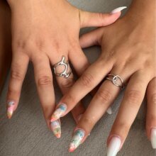 Super duper cute rings!!! Just like the pictures. They’re both resizable and shinny. I hope they won’t get oxidized later.