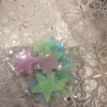хорошие звёздочки, светятся в темноте. в наборе есть на что приклеить, очень красивые. быстро лоставили