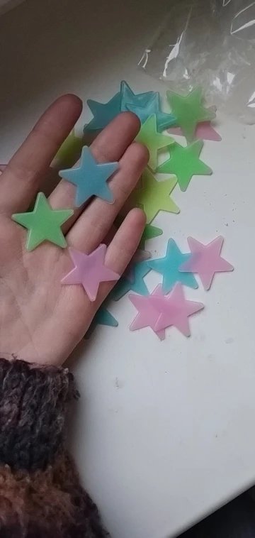 неймовірно милі та потішні різнокольорові зірочки , які світяться в темноті та створюють відчуття казковості в дитячій кімнаті . підходять як для дівчаток, так і для хлопчиків. гармонують з різними кольорами кімнат. легко приклеюються на різні поверхні та міцно тримаються.