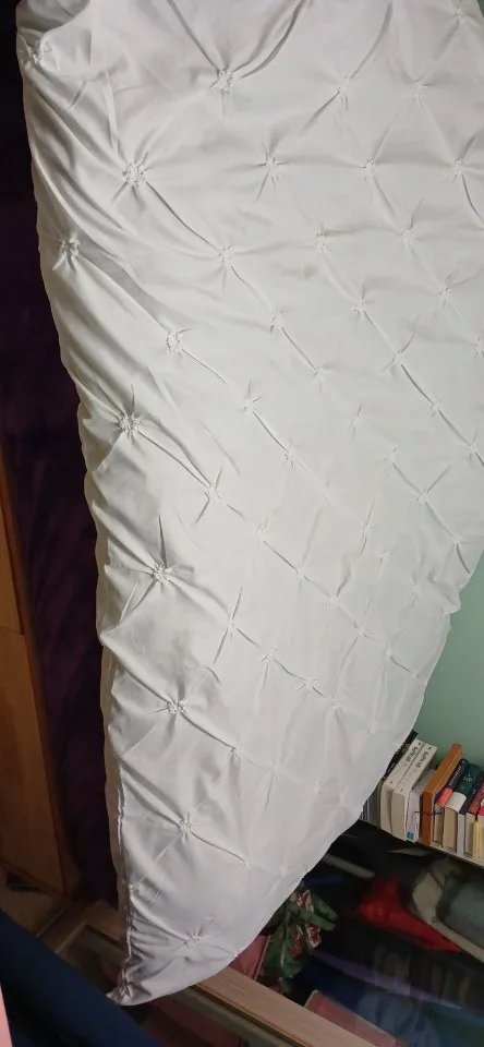 커버에 고정할 끈이 안에없다는 큰 단점이 있고 얇음 먼지는 한국거나 중국거나 비슷하게 좀 있고 빨아썼는데 얇아서 걱정은 했지만 그래도 몇년은 잘 쓸 수 있을거같음 다행히 무겁고 안쏠린 이블 넣어서 묶지않고도 쓰고있음