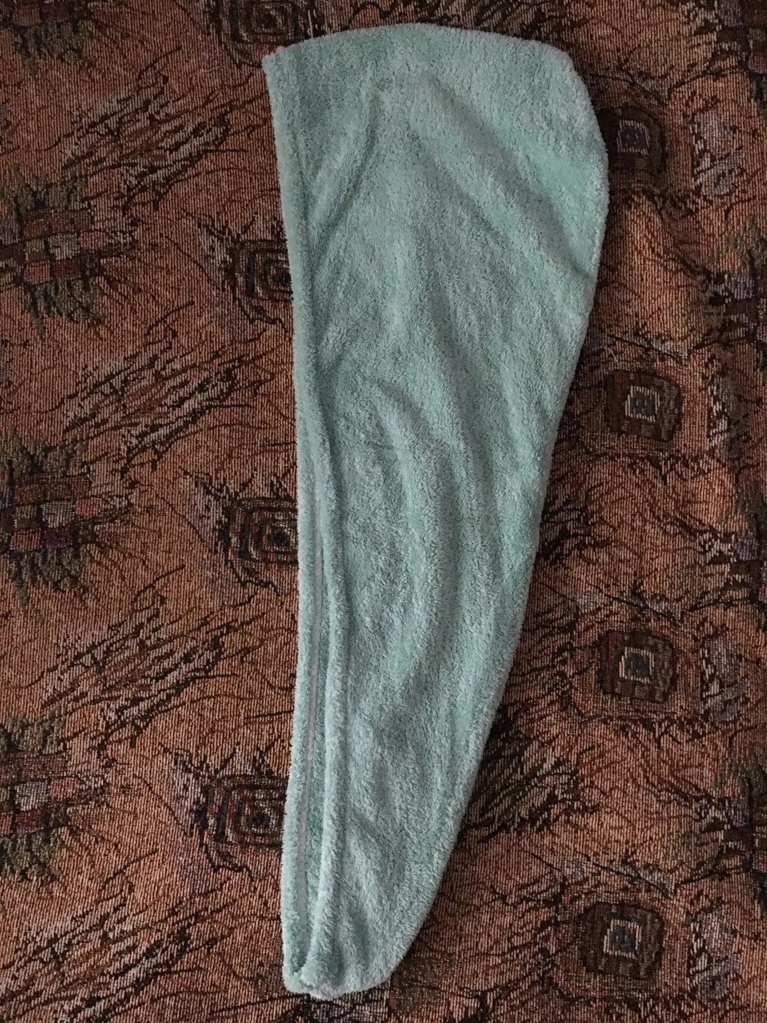 Думала, не подойдет на мою довольно объемную голову, но все ок. Довольно тонкий материал, но со своей задачей справляется хорошо - впитываемость отличная, волосы сохнут в комфортном режиме.