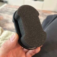 Обычная паралоновая губка для полировки кожаной обуви. Очень хорошо полирует поверхность. Удобно что можно чистить разноцветную обувь