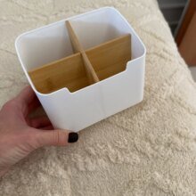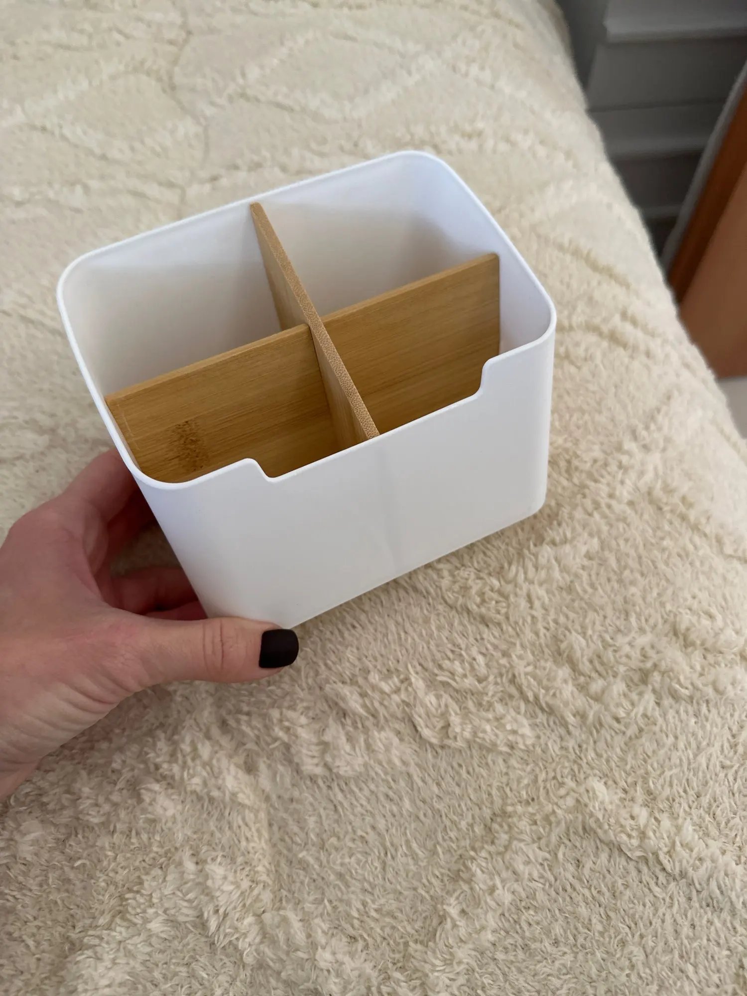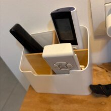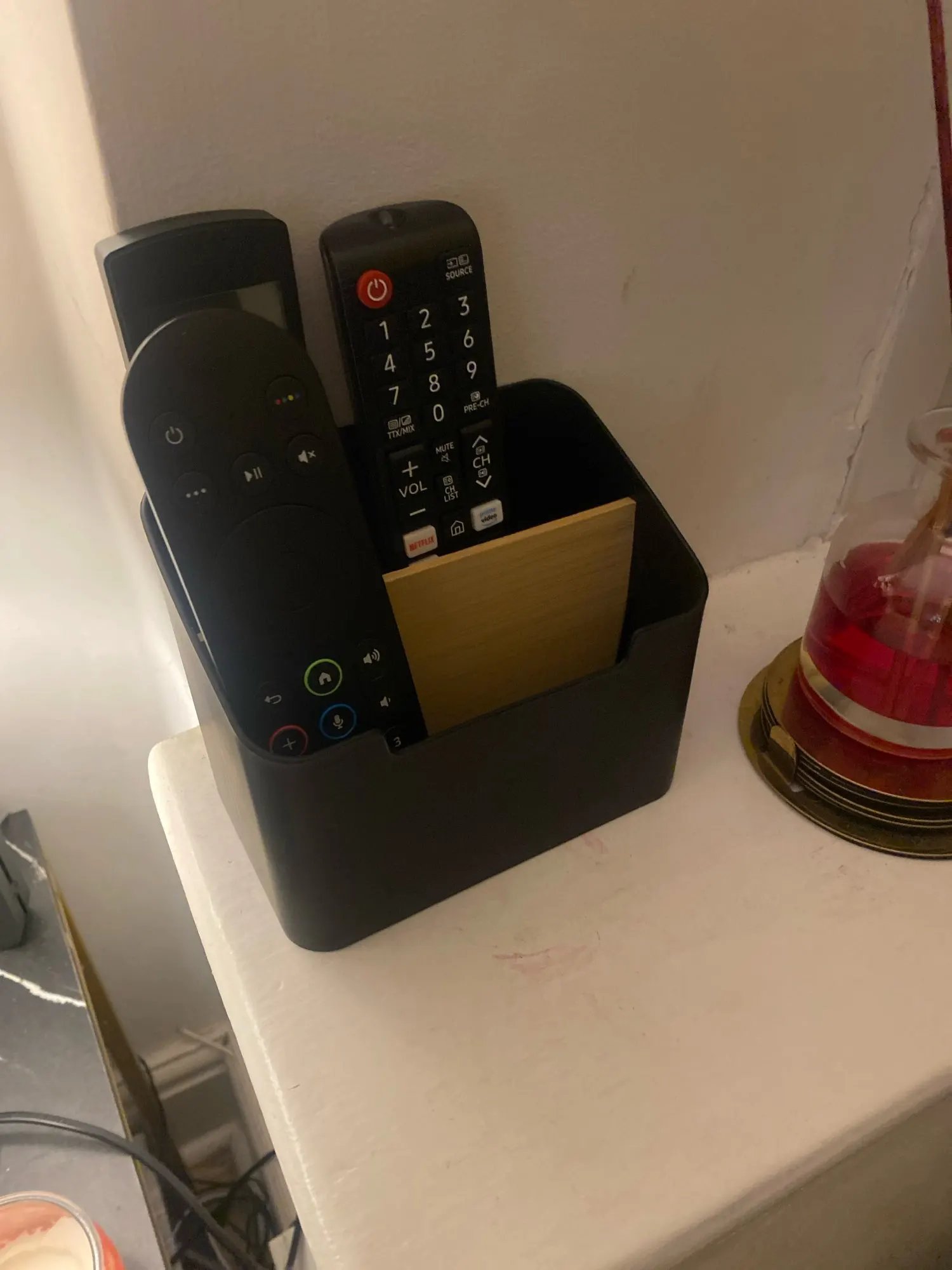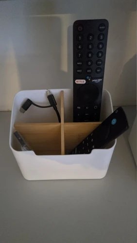 As described and well packaged. Just what we needed to keep conrols in one place and not losing them anymore . It can be altered into a 2 compartment holder, where phones can be placed 😃