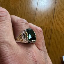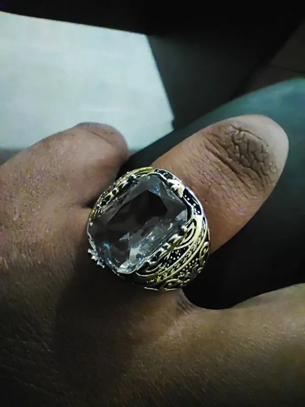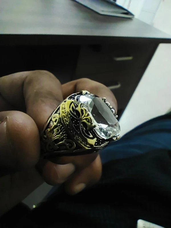 just as it looked, the material is fair for the price and it looks rich. although the middle crest isn't as big as what the image shows. but still makes sense. I chose a size 10 which was the only mistake I made as it didn't size my fingers