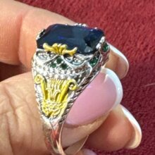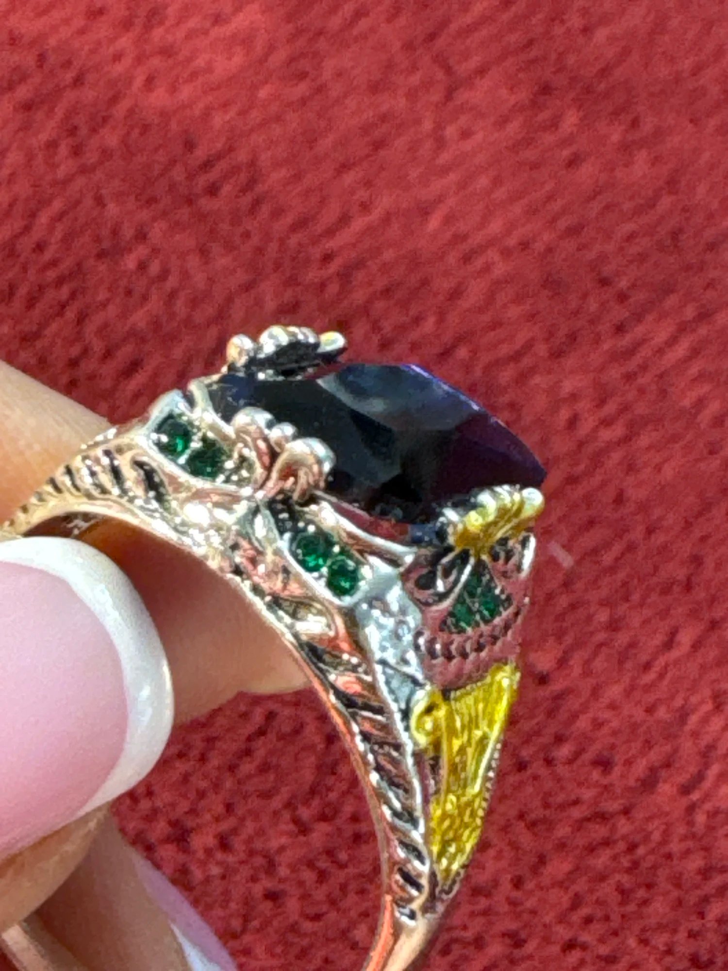 Хорошее штампованое кольцо. камни крупные и яркие. Для театральных постановок — самое оно! отлично блестят, особенно в искусственном свете.