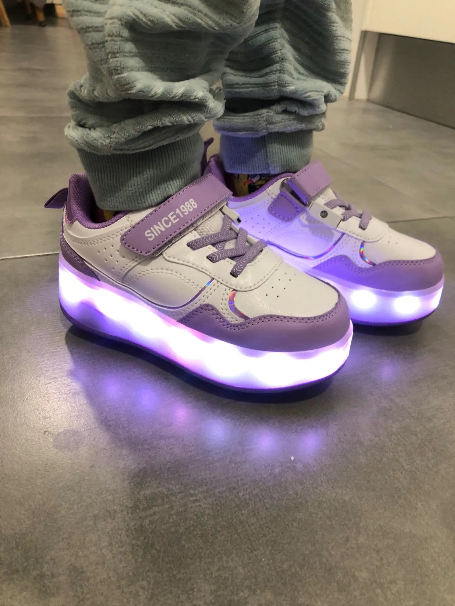 Roller Skate Shoes Kids Boys Girls Flashing Light 4 Wheel Roller Shoes Led Light Luminous Sneakers Outdoor Casual Shoes Children