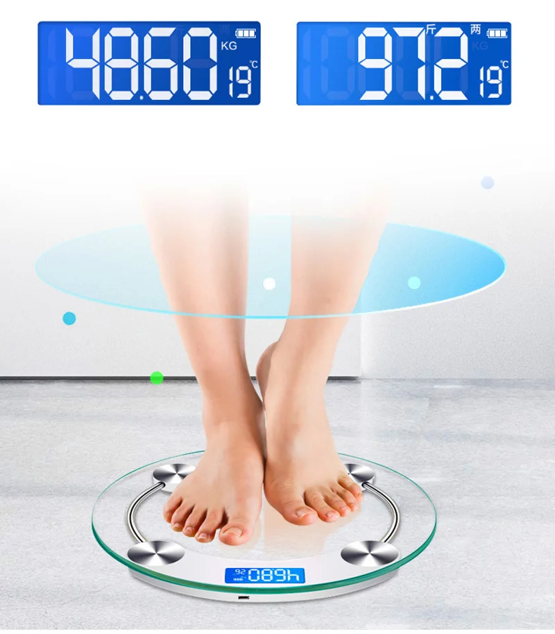 Round Shape Digital Body Weight Scale High-Definition LCD Display Bathroom Scale Floor Electronic Scales Precision 0.2-180KG