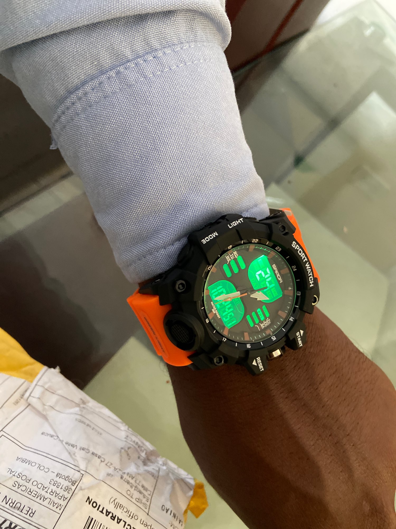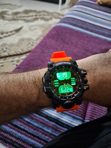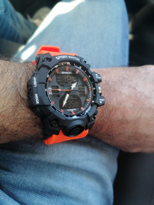 it's a bright orange watch that I use for work ... what more could you want for £10 ... and it's nice and big , exactly what I wanted ...
