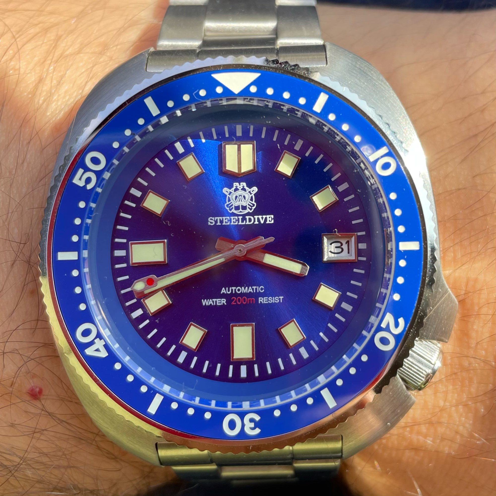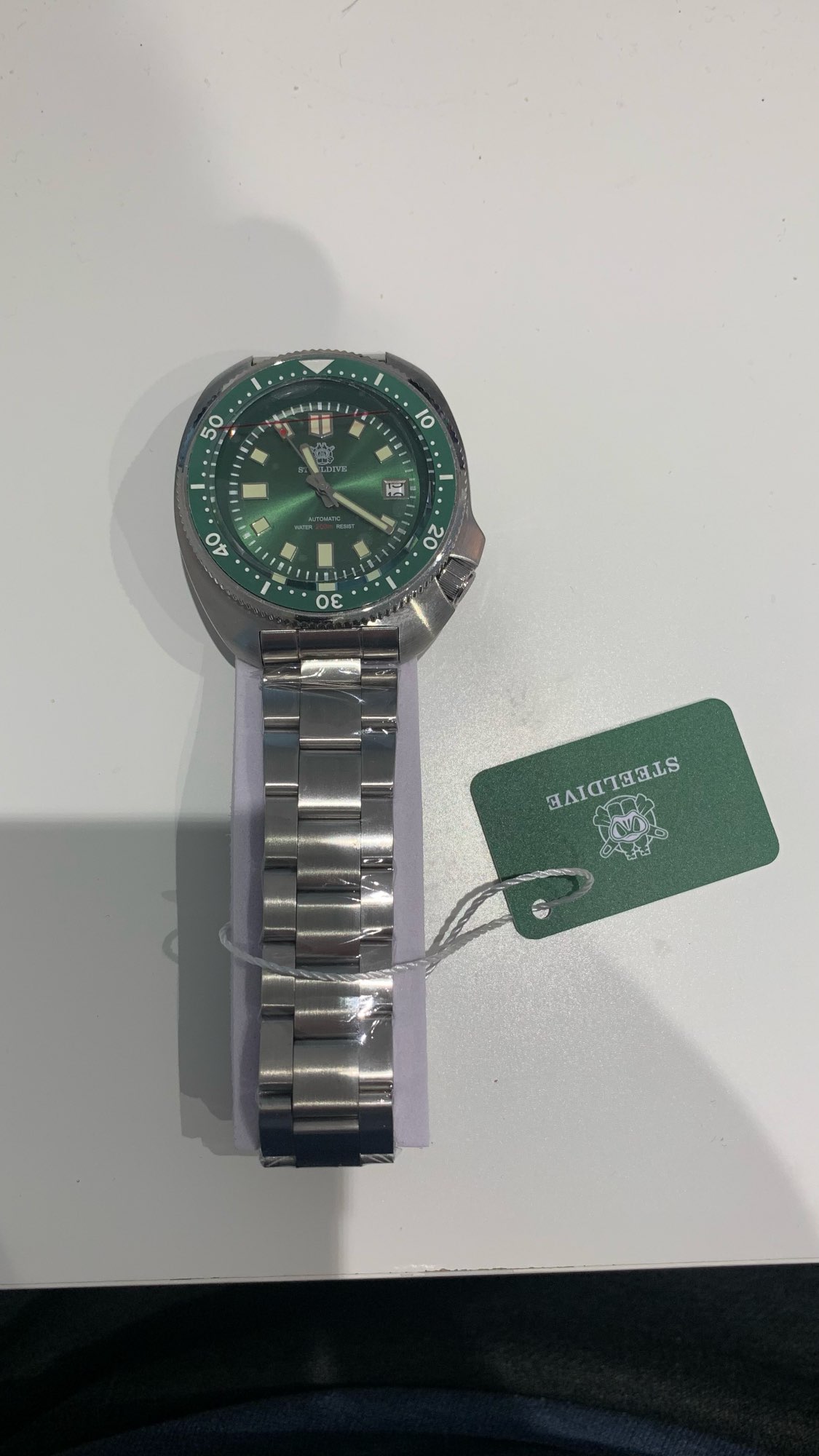 Beautiful clock arrived in the record time of 8 days. I have already had some steeldives in the past but I have the impression that they have improved. The bracelet is better as the clasp and the bezel is really solid. precise alignment and without games. Really happy with the purchase.