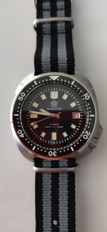 It took a little longer than expected, but very happy with the tribute to the Seiko Prospex (Captain Willard). Looks very solid, quality and good finish. Unbeatable price-quality ratio. My watch mechanism has a lag of only + 2s/day. Feels great on the wrist, a little heavy perhaps, but it is appreciated to notice the watch. Fully recommended, both this SD1970 and any Steeldive. Is a safe and reliable purchase.