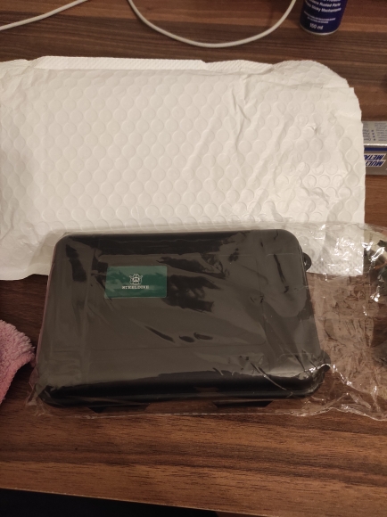 Plastic box packaging with label and warranty card