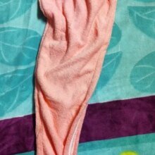 Bonista toalla secar el cabello muy suave y de buena calidad .llego a tiempo y volvería a comprarla.