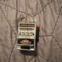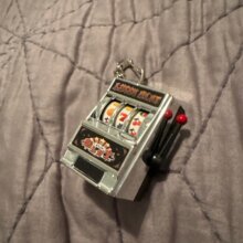the slot machine is adorable. when you pull the lever, it spins around just like the ones in Vegas. it's very shiny, very vibrant.