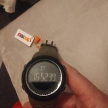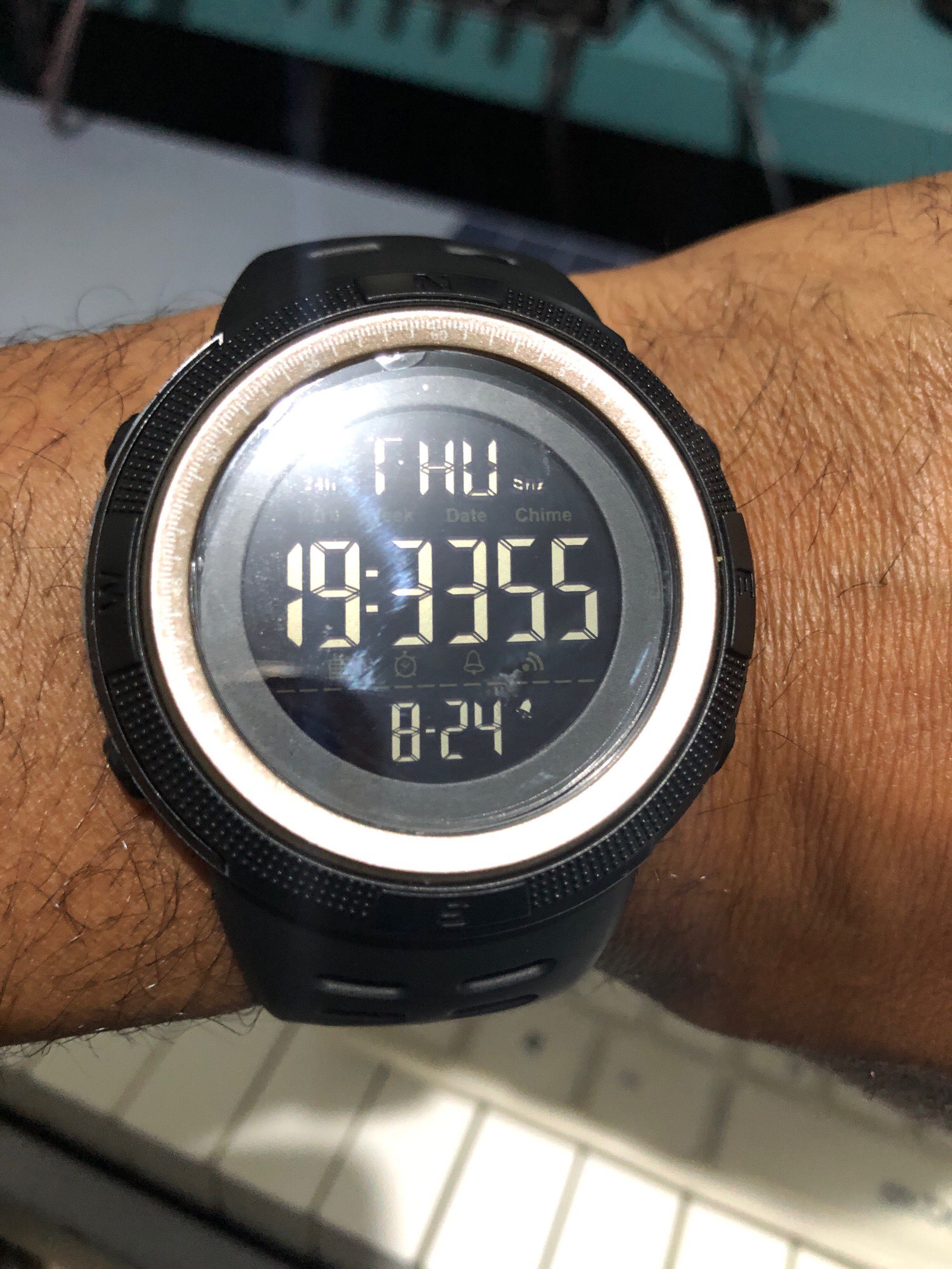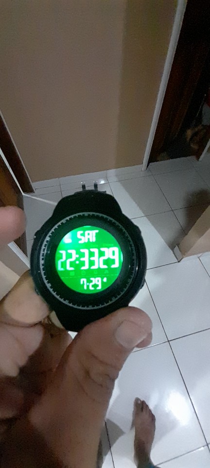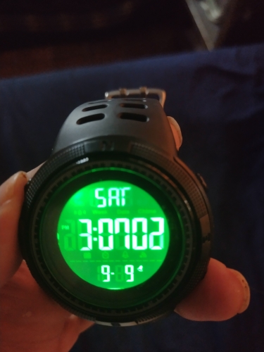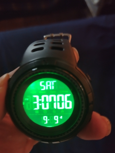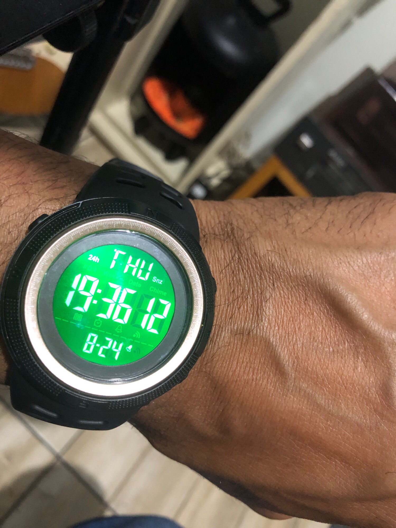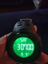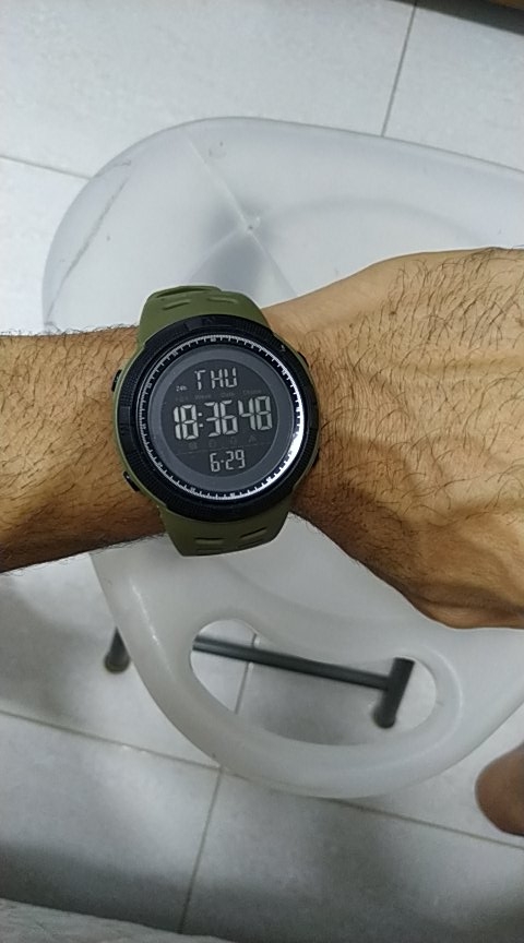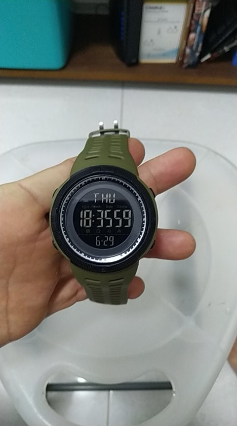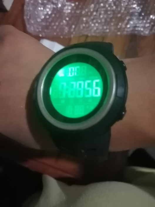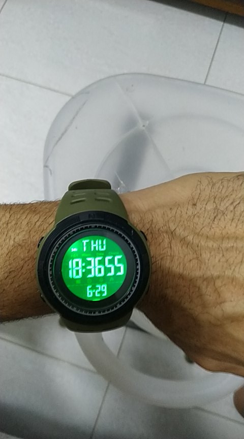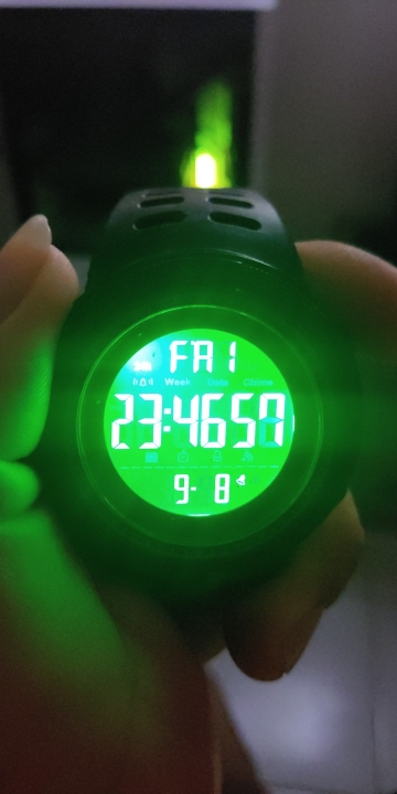 Good quality, comfortable to carry and meets all functions of double hour, day, week and month, alarm, stopwatch and light in green color.