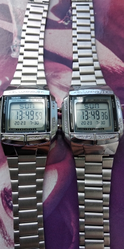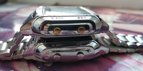 Before you a comparison of the new watches from this store and the watches I wore for 4 years and three months, every day, sometimes taking off at night. The buttons were erased and bronze, there were scratches and traces of an erased coating in the corners, the glass is absolutely free of scratches, the battery did not change, but the sound is quieter than new ones. Shorter I wanted the same watch, but new. But the difference in appearance is visible only from a distance of half a meter, I see this difference, but people do not see. That only I see them new, but it still warms my soul.