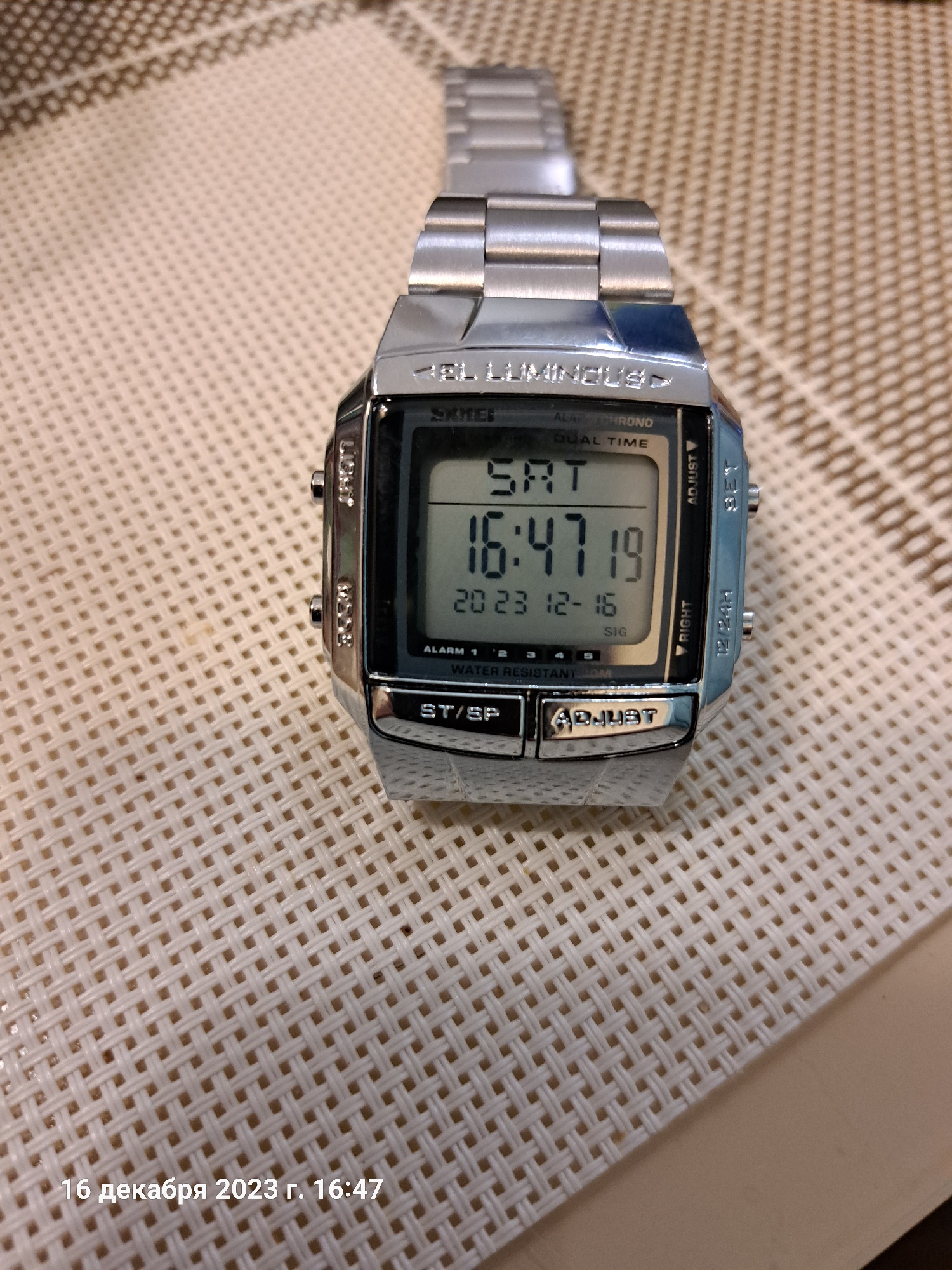 The watch came! Everything is fine, no scratches! Packed in several layers of pimps, respect to the store and delivery! Setting, more or less understandable for a 55-year-old person, but some of the characters on the screen are not explained... in particular, the SNZ at the bottom of the screen, in the line of alarms. Maybe I'll figure it out later. Well, in a small minus-look at the screen directly. Slightly from above-below and already the LCD sectors merge. Right-left, there is no such effect. For such money is a normal product.