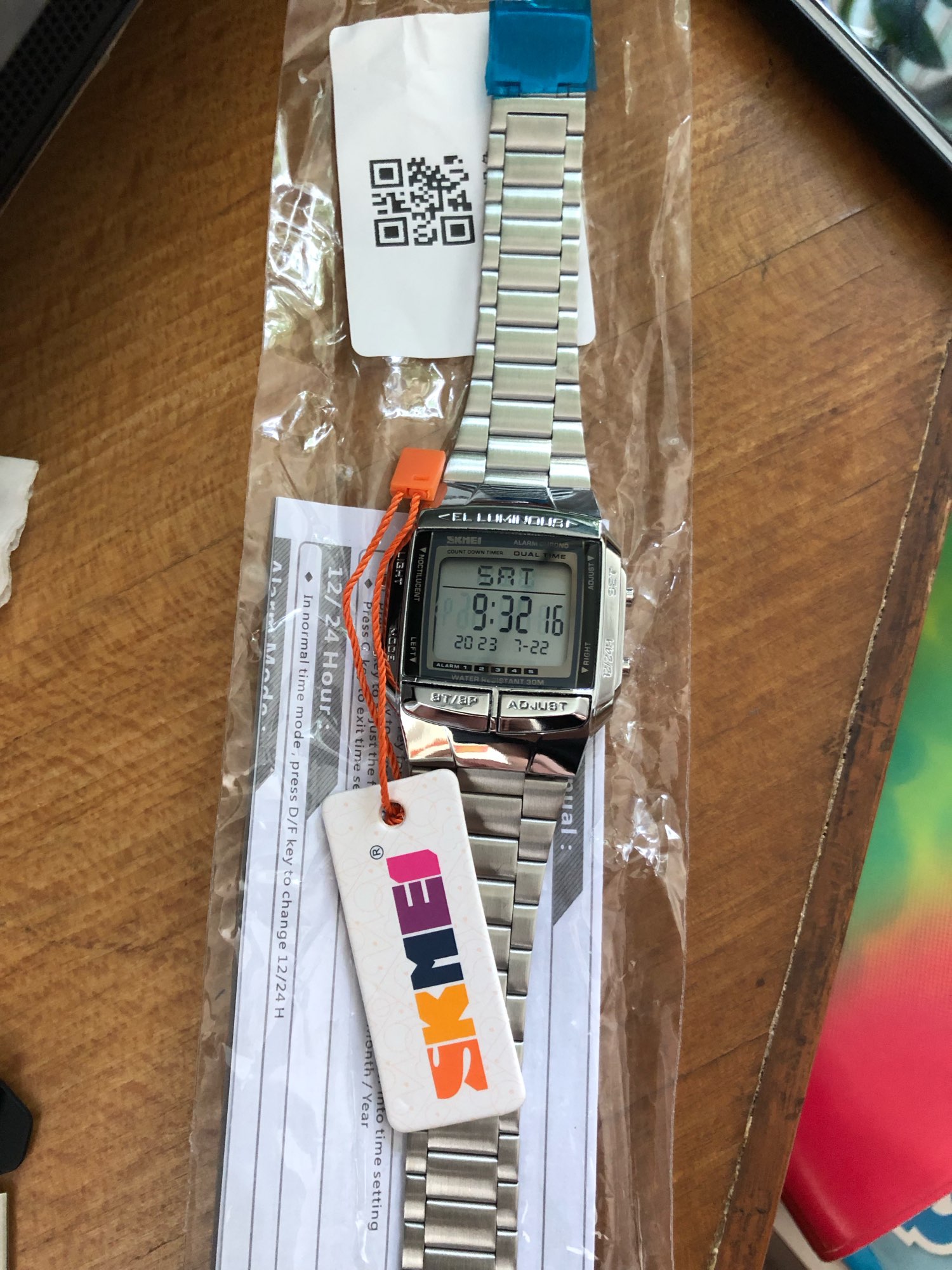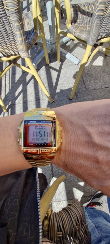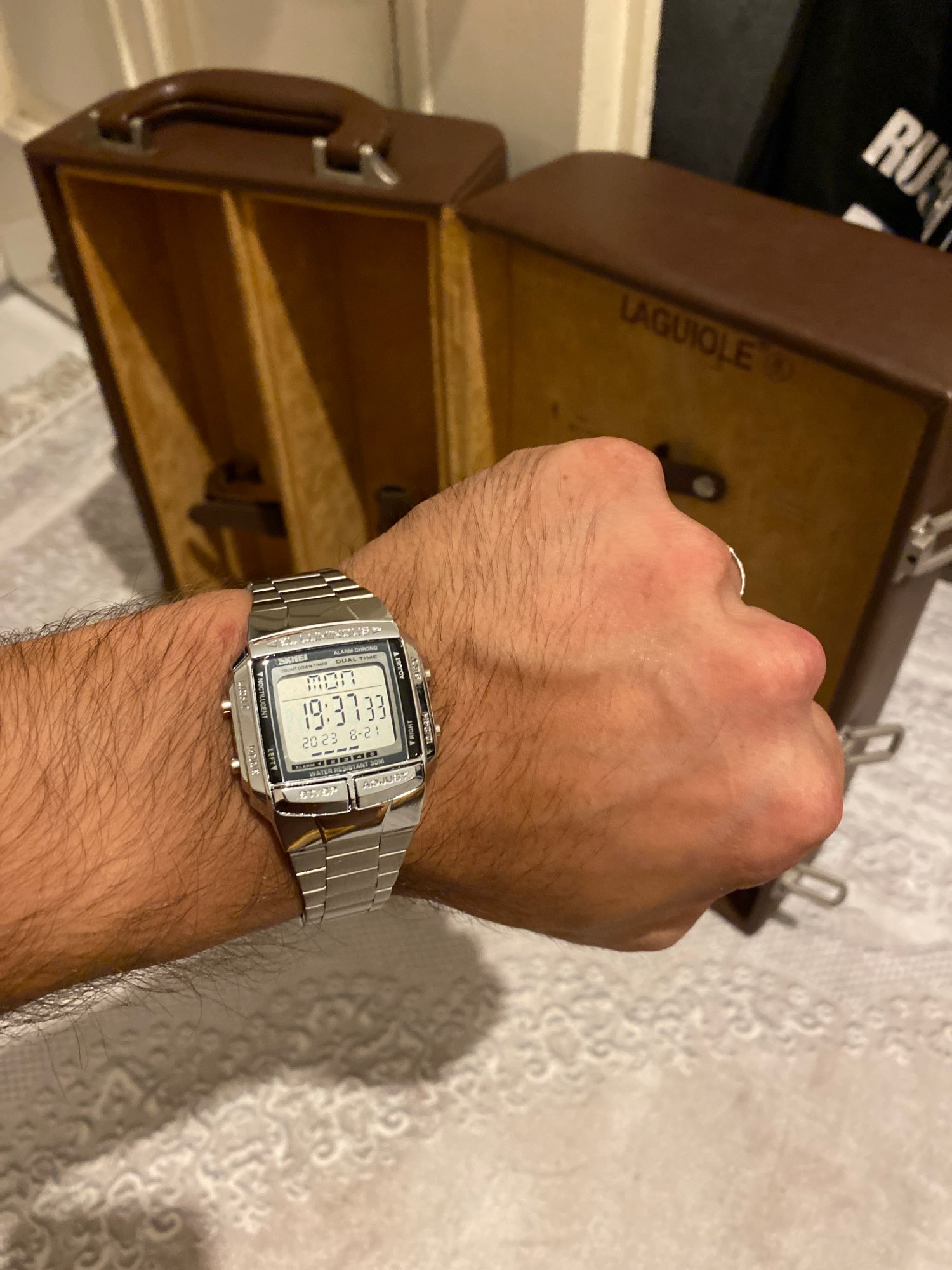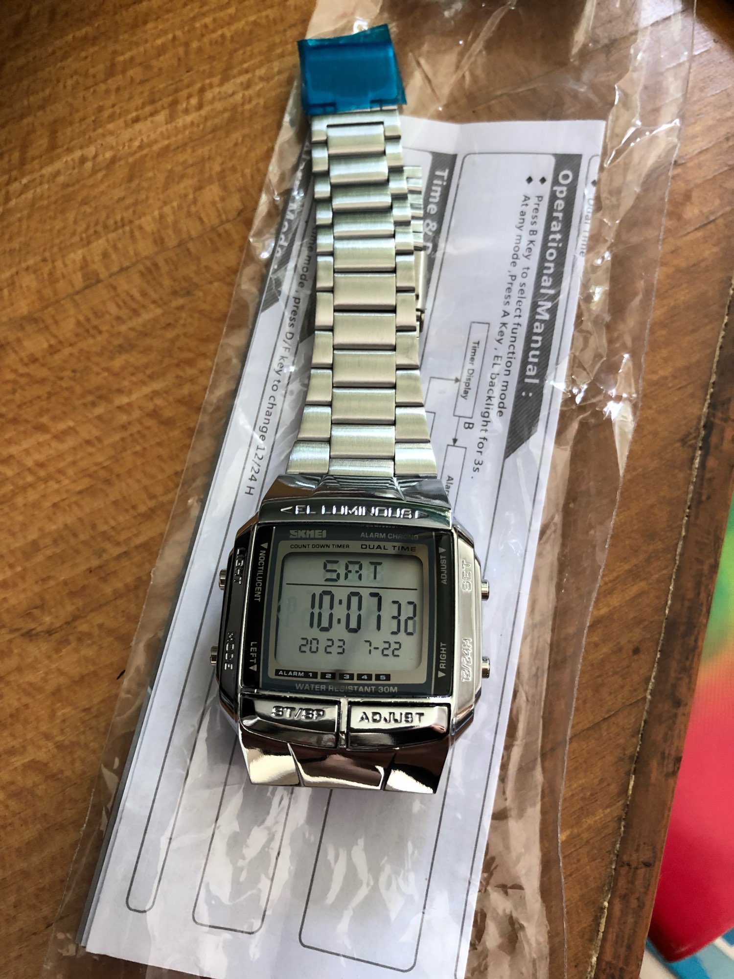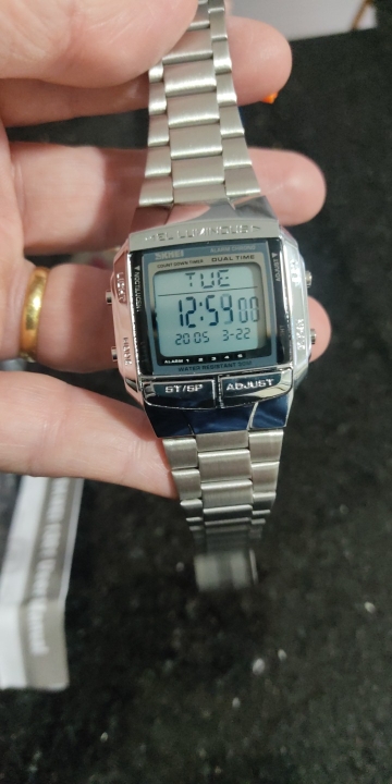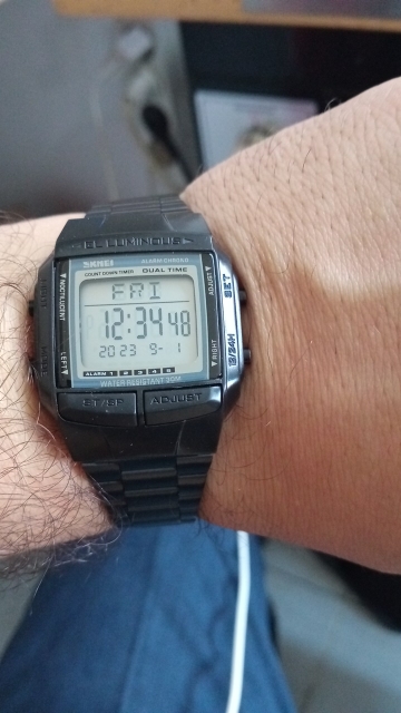 Beautiful. Two times, stopwatch, Countdown, five alarms plus the hour,
