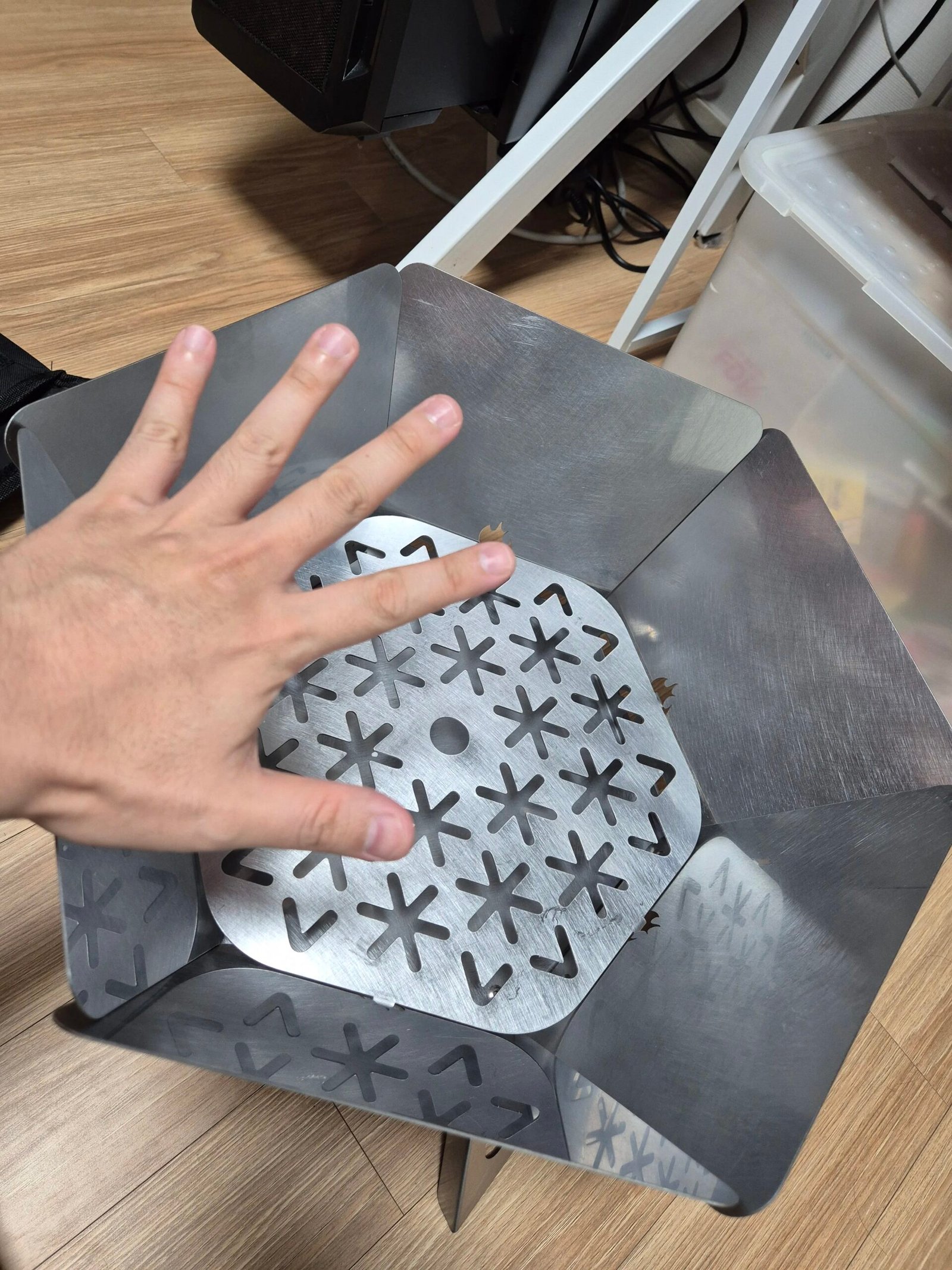 이중연소는 아니지만 수납 사이즈도 작아서 좋고 폈을때는 사이즈도 꽤 커서 화로로도 고기불판으로도 사용하기 좋습니다. 이중연소를 원하시는 분들한테는 안맞으니 참고해서 구매하시면 좋을거 같습니다. 전 만족