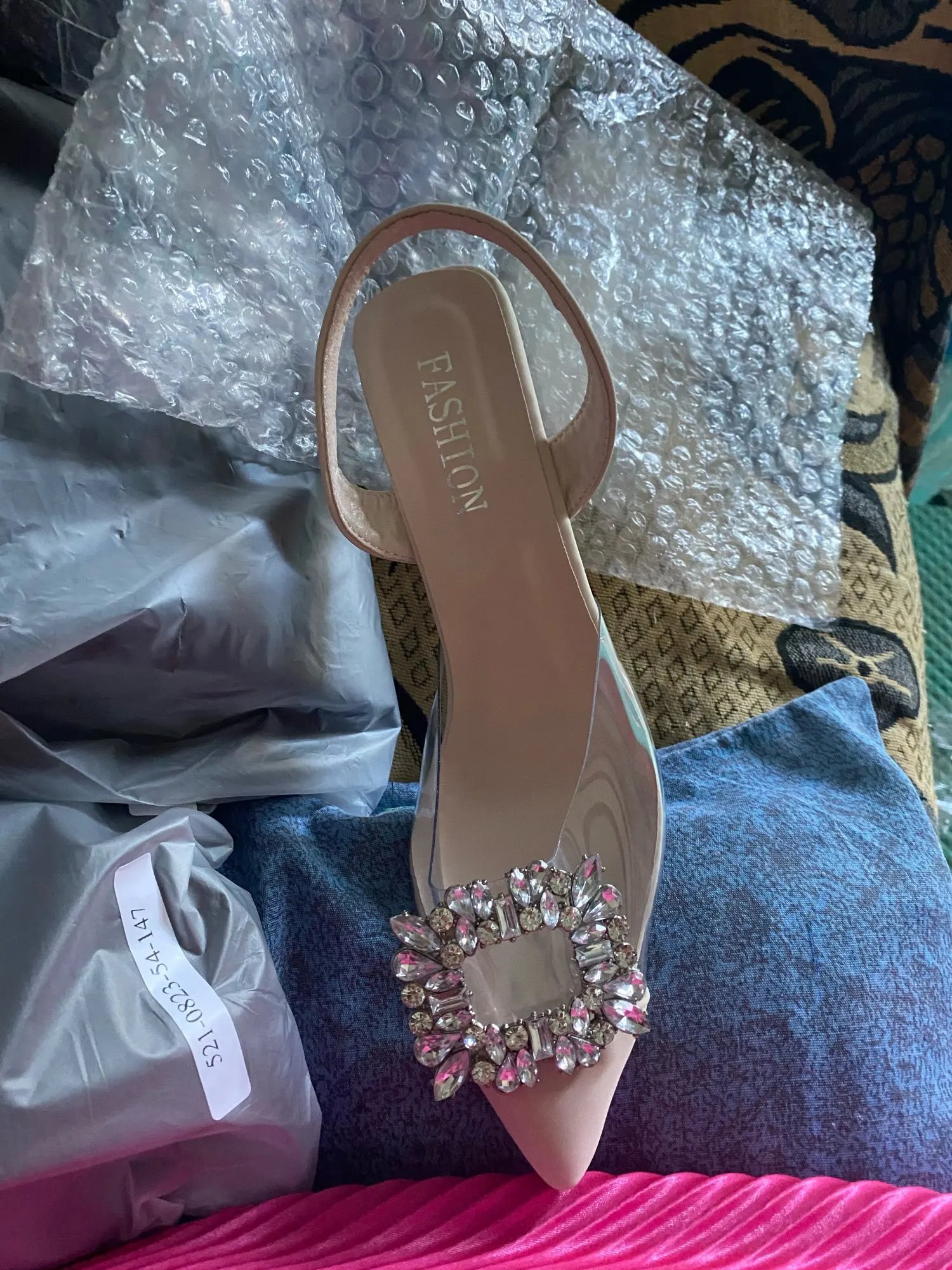 muy bonitos, el color y la pedrería están bien, pedí mi talla y me quedaron poco grandes, pero están muy comodos