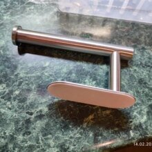 Dvieļu turētājs derēs tikai standarta papīra ruļļiem. Lielajiem ģimenes būs par šauru.