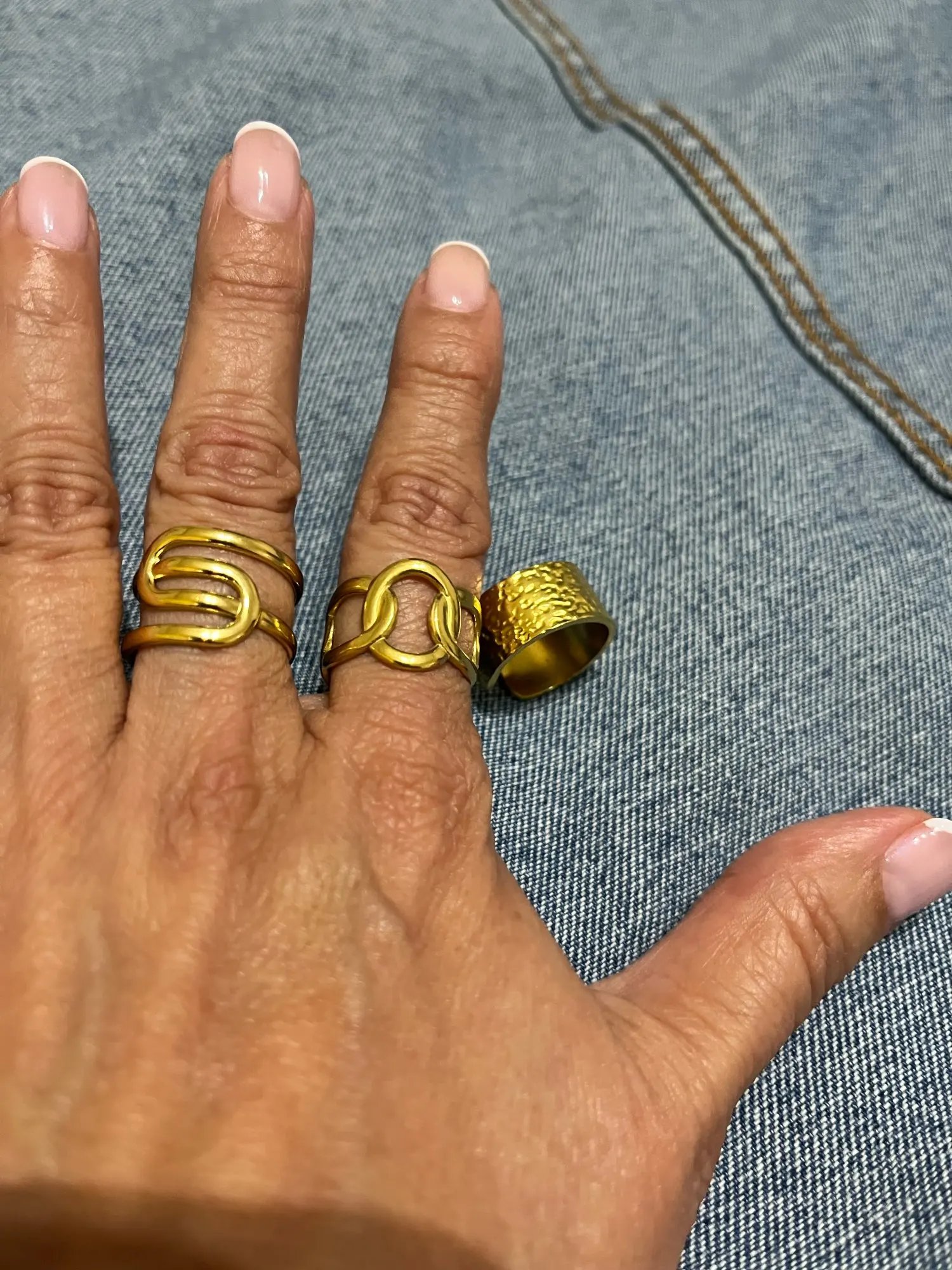 316L Stainless Steel Rings for Women 18K Gold Plated Couple Jewelry Aesthetic Accessorie Adjustable Punk Embossed Hollow Wide Ring