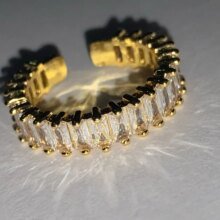 Very cute, although I thought the ring was thicker but it is super good, the Stones shine and it is adjustable, it claims to be stainless steel.
