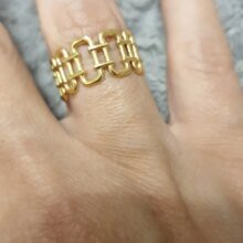 Satisfied with this ring! I love the shape. The little bents makes it shine in every angle. The only thing is that although it is adjustable, it is very stiff and difficult to adjust. Gold looks good quality. I think this type of style looks good on every type of finger. Seller shipped immediately and has very good prices. I ordered three rings from this store and they all came correct