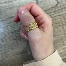 316L Stainless Steel Rings for Women 18K Gold Plated Couple Jewelry Aesthetic Accessorie Adjustable Punk Embossed Hollow Wide Ring