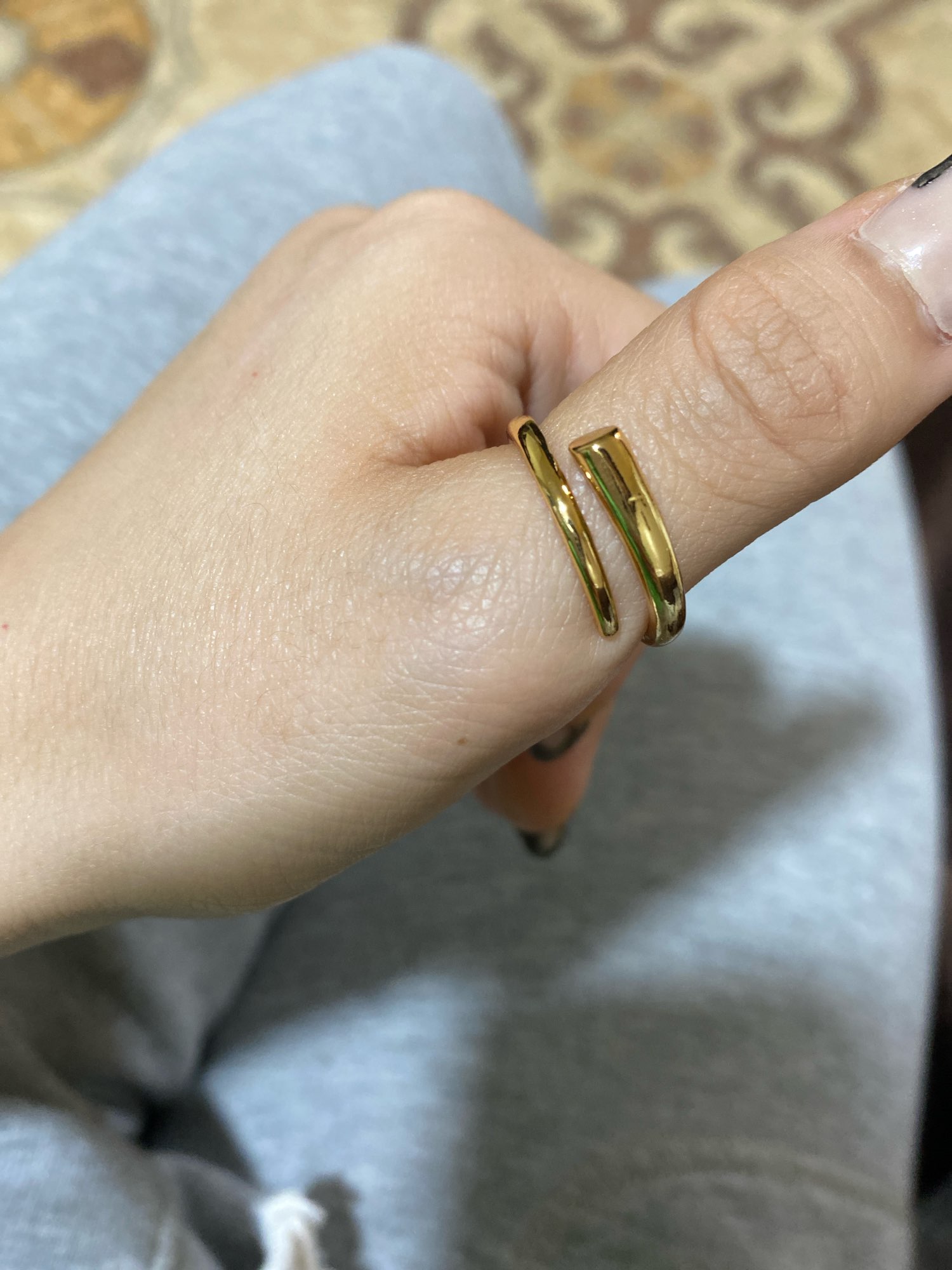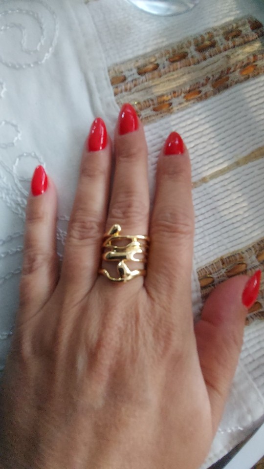 Beautiful! I emcant the design and it looks great on any finger! It has a pink gold hue, it's not gold exactly but it's what makes it special. Now let's see how long it lasts, I'll comment