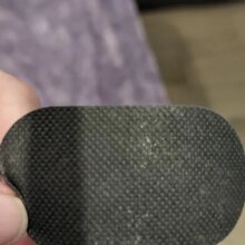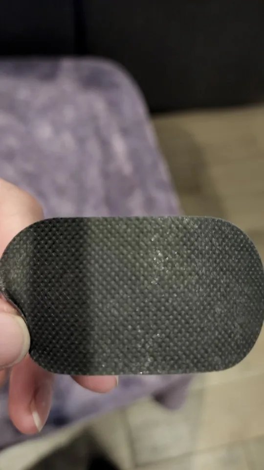 very thin. like weedblock 'fabric' with adhesive. not painful at all to pull off, even if there is hair!