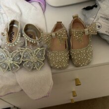 Туфельки красоты просто невероятной, хоть и видно что они наверное не на много раз и не слишком удобные, но на праздник для маленькой девочки кокетки самое то🤗🤩 Моя почти трёхлетняя дочь была в восторге увидив их