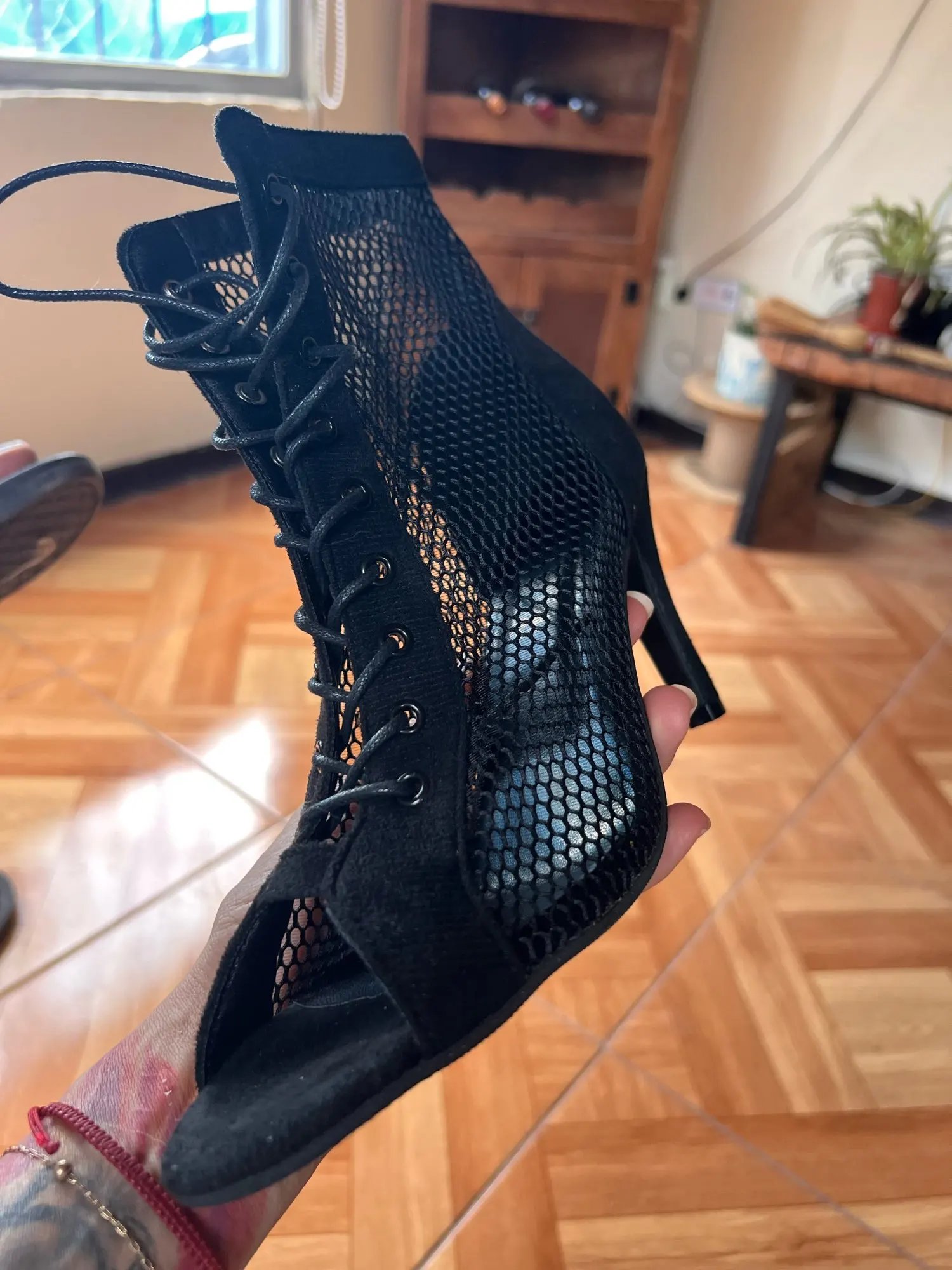Summer New Pupms Women High Top Dance Shoes Ballroom Salsa Tango Sandals Girl Fashion Party Mesh Cutout High Heel Sandalias