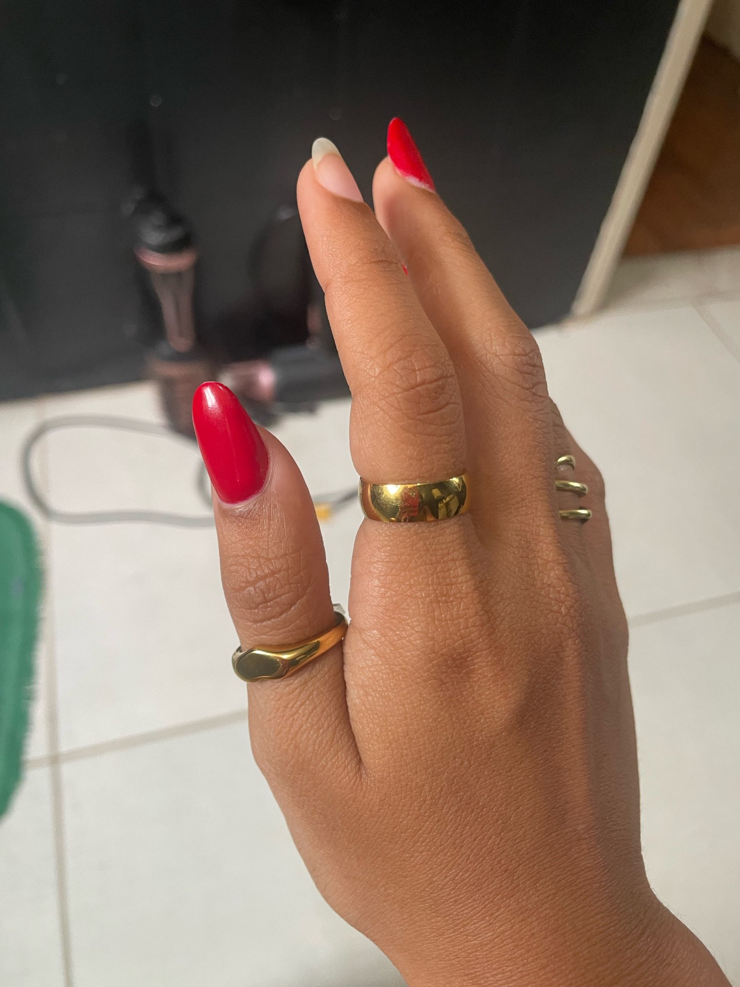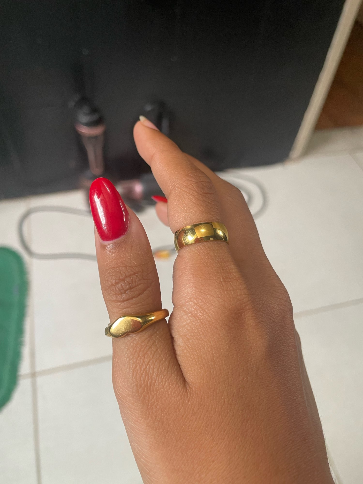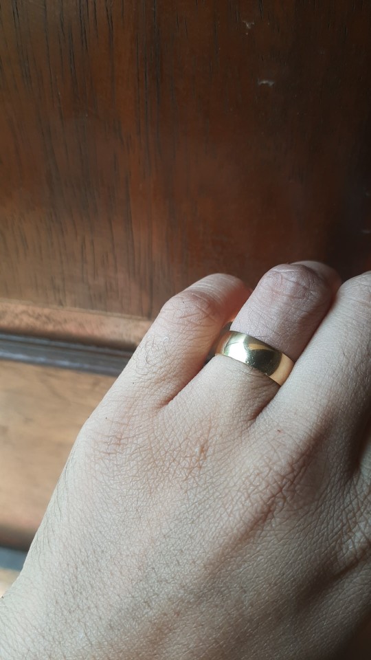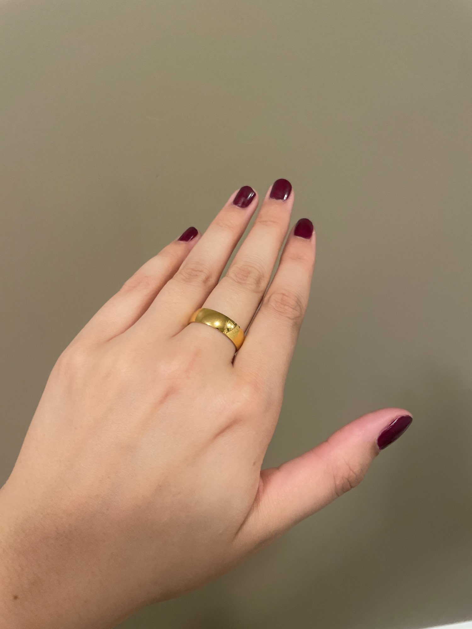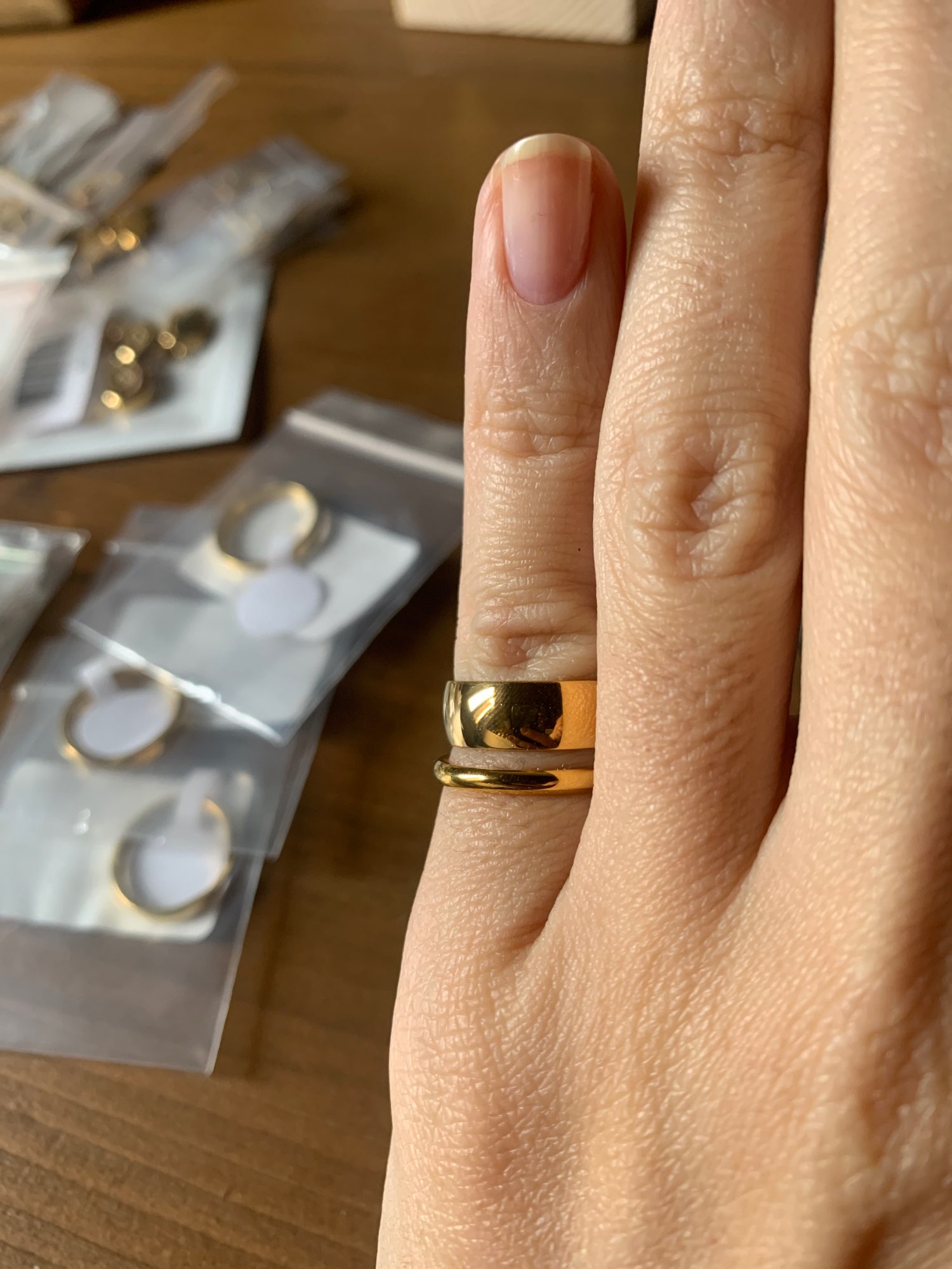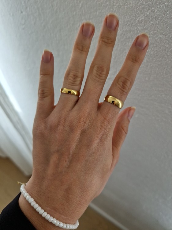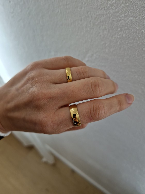 Beautiful ring, I have it for about 3 weeks now, very satisfied, does not discolor, really recommended this store.