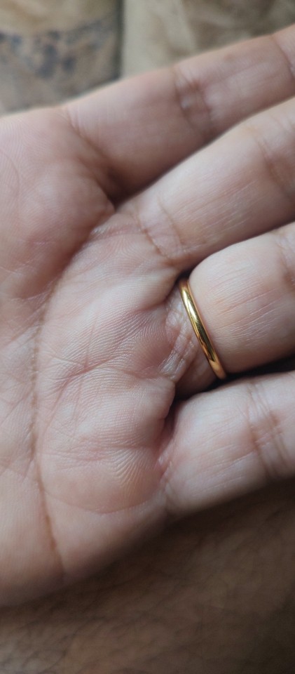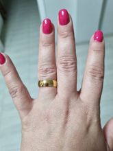 Exactly as in the photo! Had already bought this ring in 2019/2020 and only now is starting to come out the color (and it is not getting black only silver I intend to bathe and keep wearing)