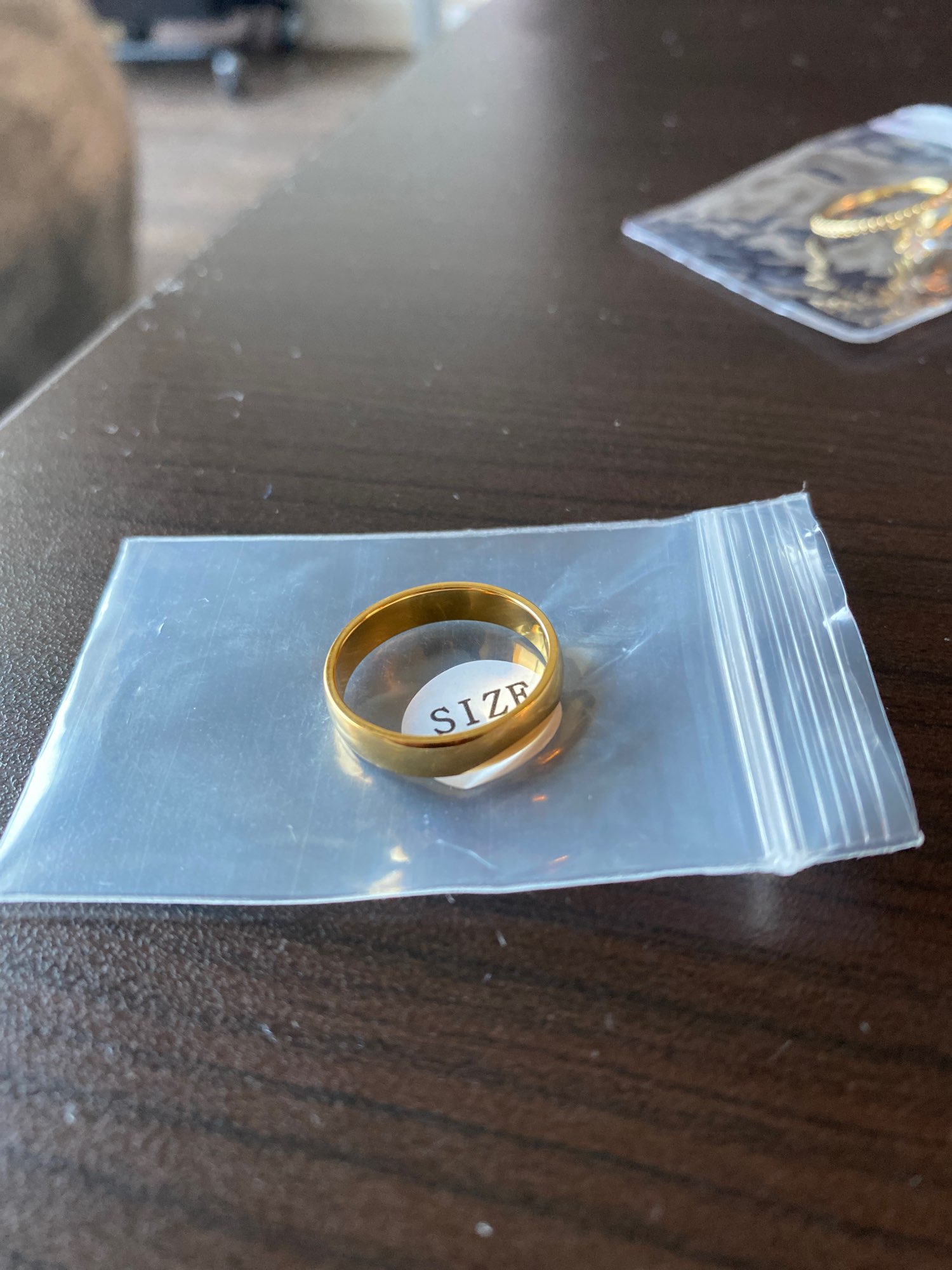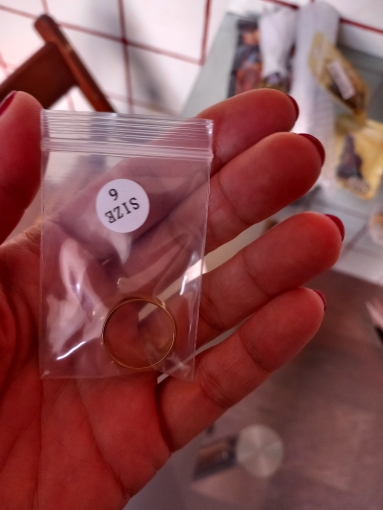 Cute pinkish gold ring. A little small for a size 6. Its more like a 5.75, so it fits a little tight. Fast shipping.