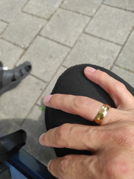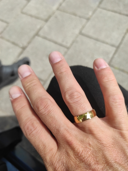 Does not black on the finger! I advise you! I have thin fingers 19 size Super