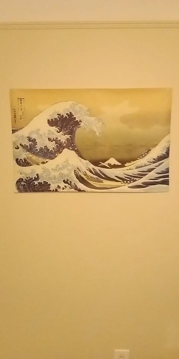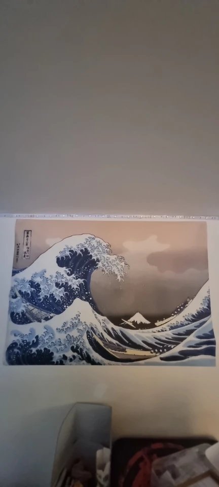 Il s'agit d'une magnifique reproduction de « La grande vague au large de Kanagawa » de Hokusai. Je la recommande à tous ceux qui aiment cette œuvre d'art.