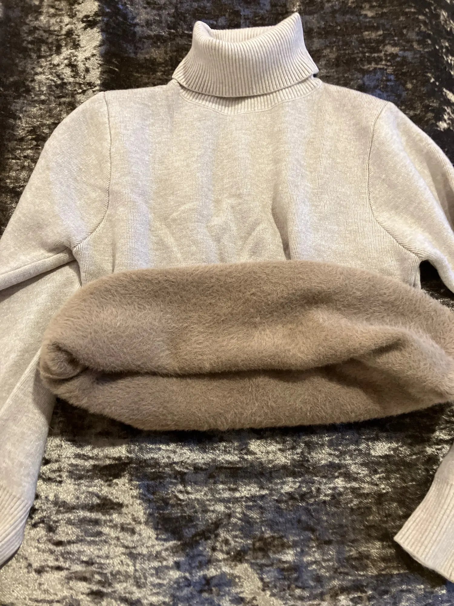 Turtleneck Winter Sweater Women Elegant Thicken Velvet Lined Warm Sueter Knitted Pullover Slim Tops Jersey Knitwear Jumper New